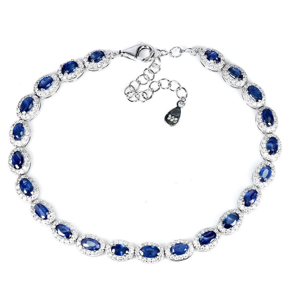 OVAL CUT BLUE SAPPHIRE IN 14K WHITE PLATED GOLD OVER 925 STERLING SILVER - 8 INCHES LONG - APPRAISED REPLACEMENT VALUE