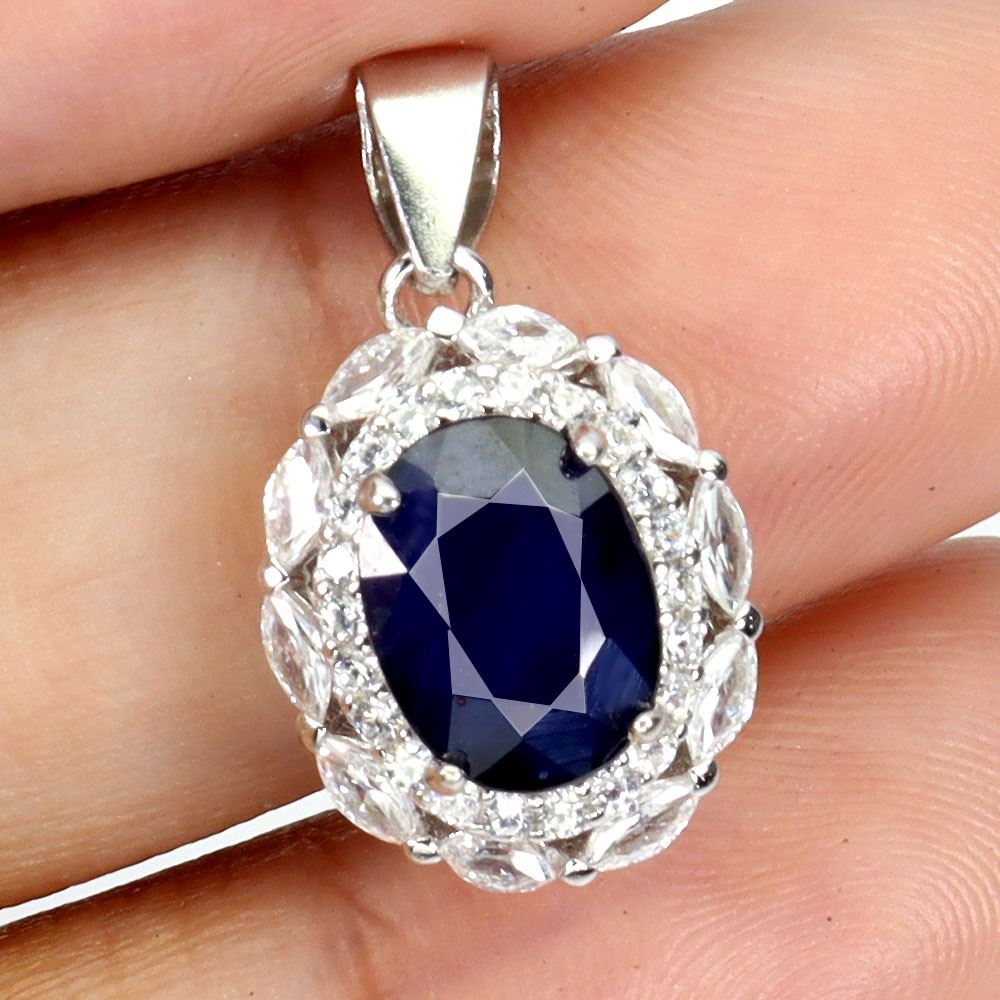 OVAL CUT BLUE SAPPHIRE PENDANT IN 14K WHITE PLATED GOLD OVER 925 STERLING SILVER - APPRAISED REPLACEMENT VALUE