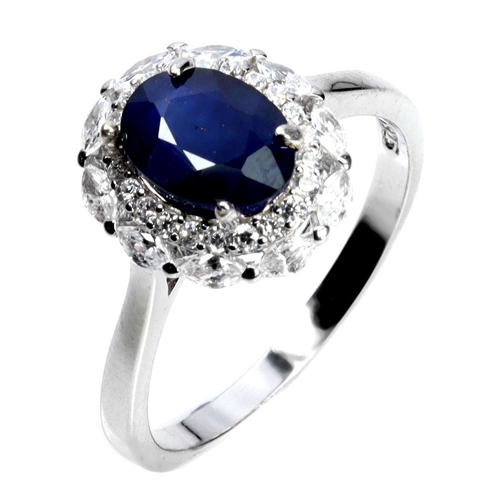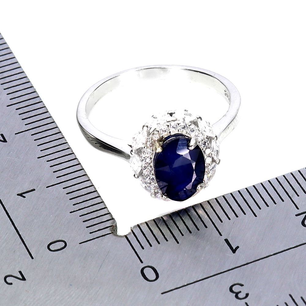 OVAL CUT BLUE SAPPHIRE RING IN 14K WHITE PLATED GOLD OVER 925 STERLING SILVER - SIZE 7.5 - APPRAISED REPLACEMENT VALUE