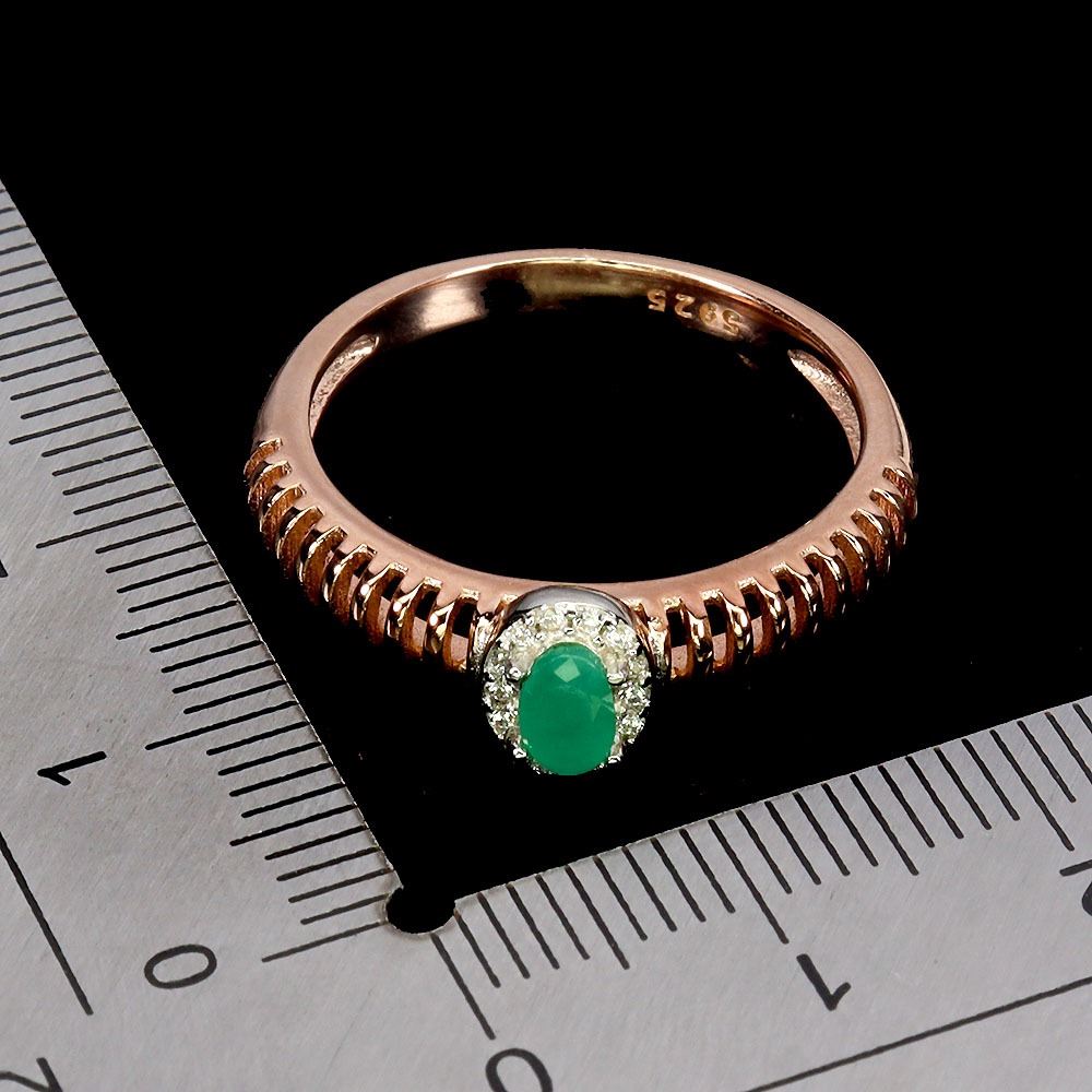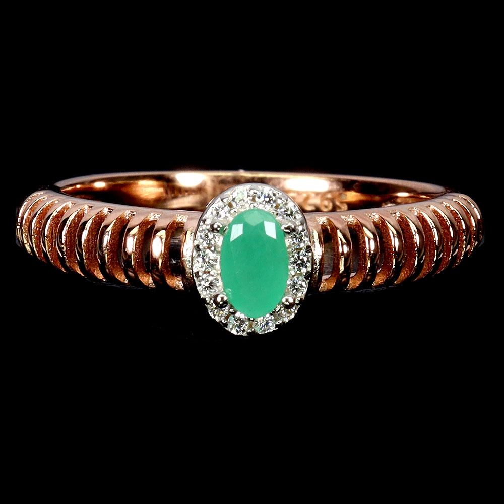 OVAL CUT EMERAL RING IN 14K ROSE PLATED GOLD OVER 925 STERLING SILVER -SIZE 8 APPRAISED REPLACEMENT VALUE