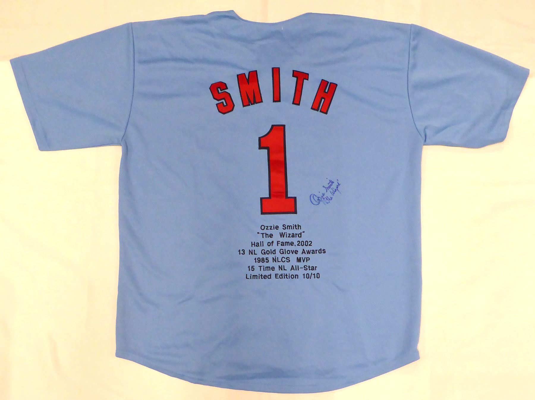 OZZIE SMITH SIGNED ST. LOUIS CARDINALS STAT JERSEY (BECKETT COA