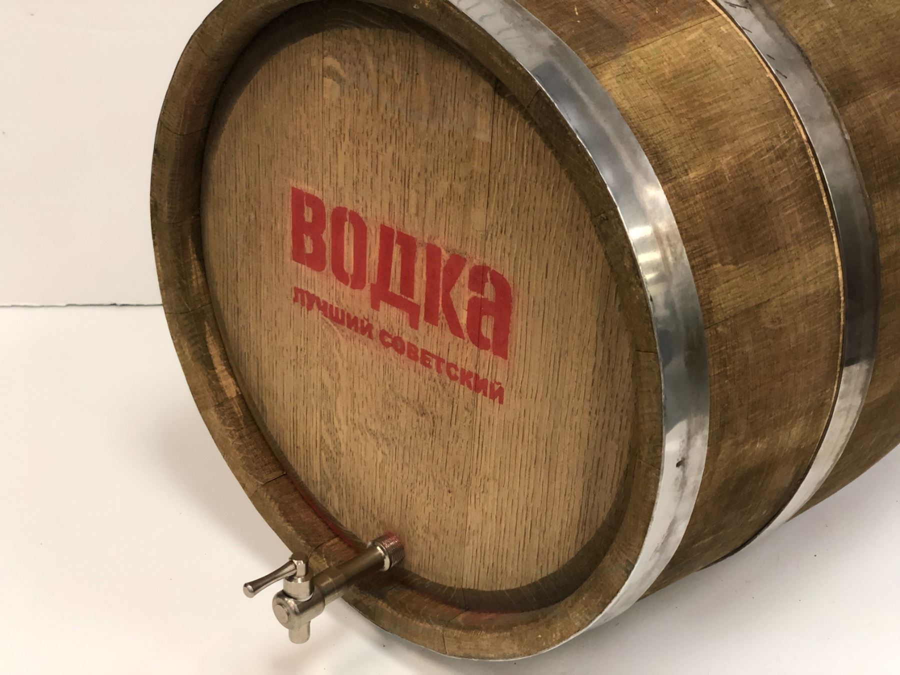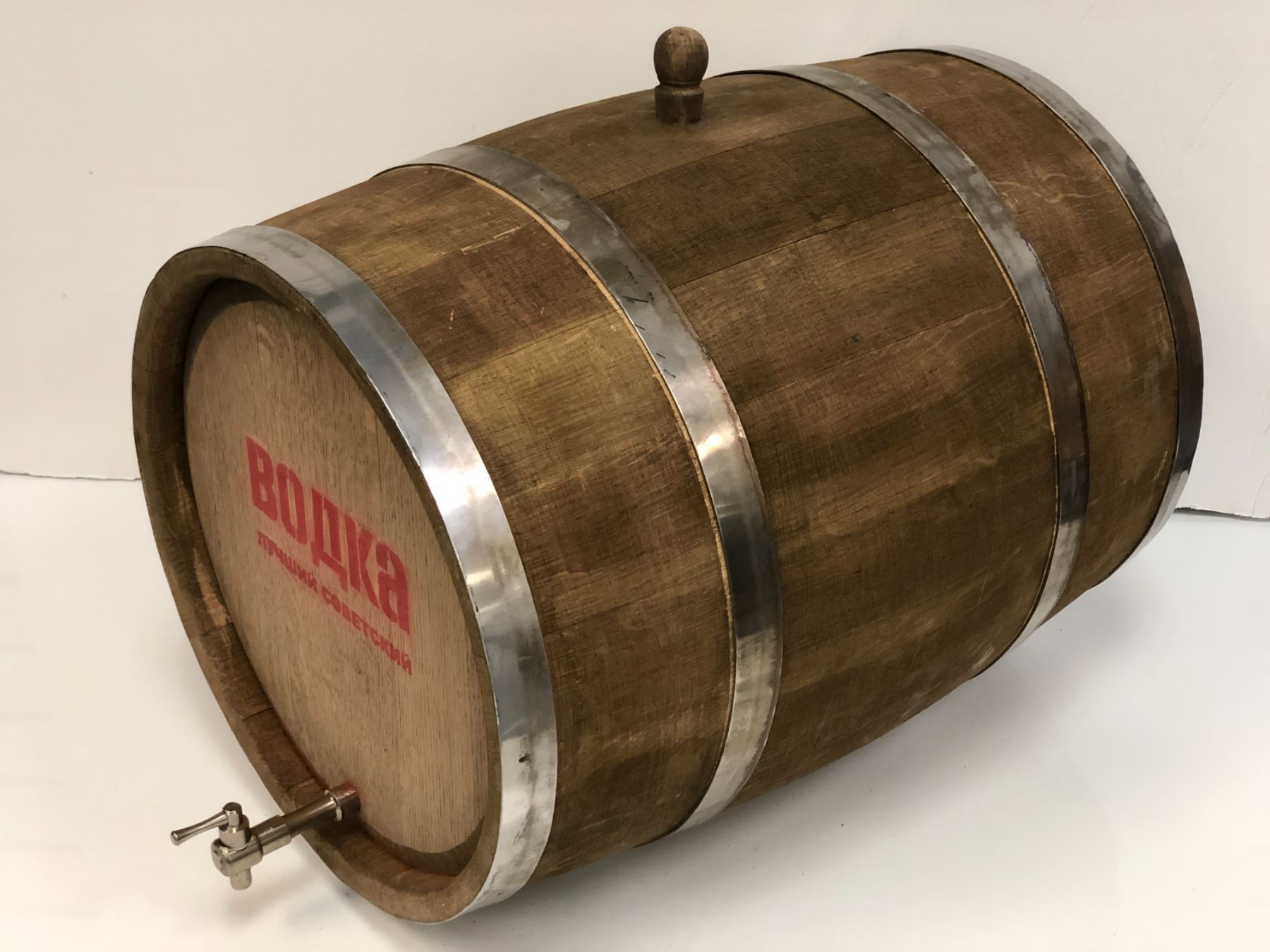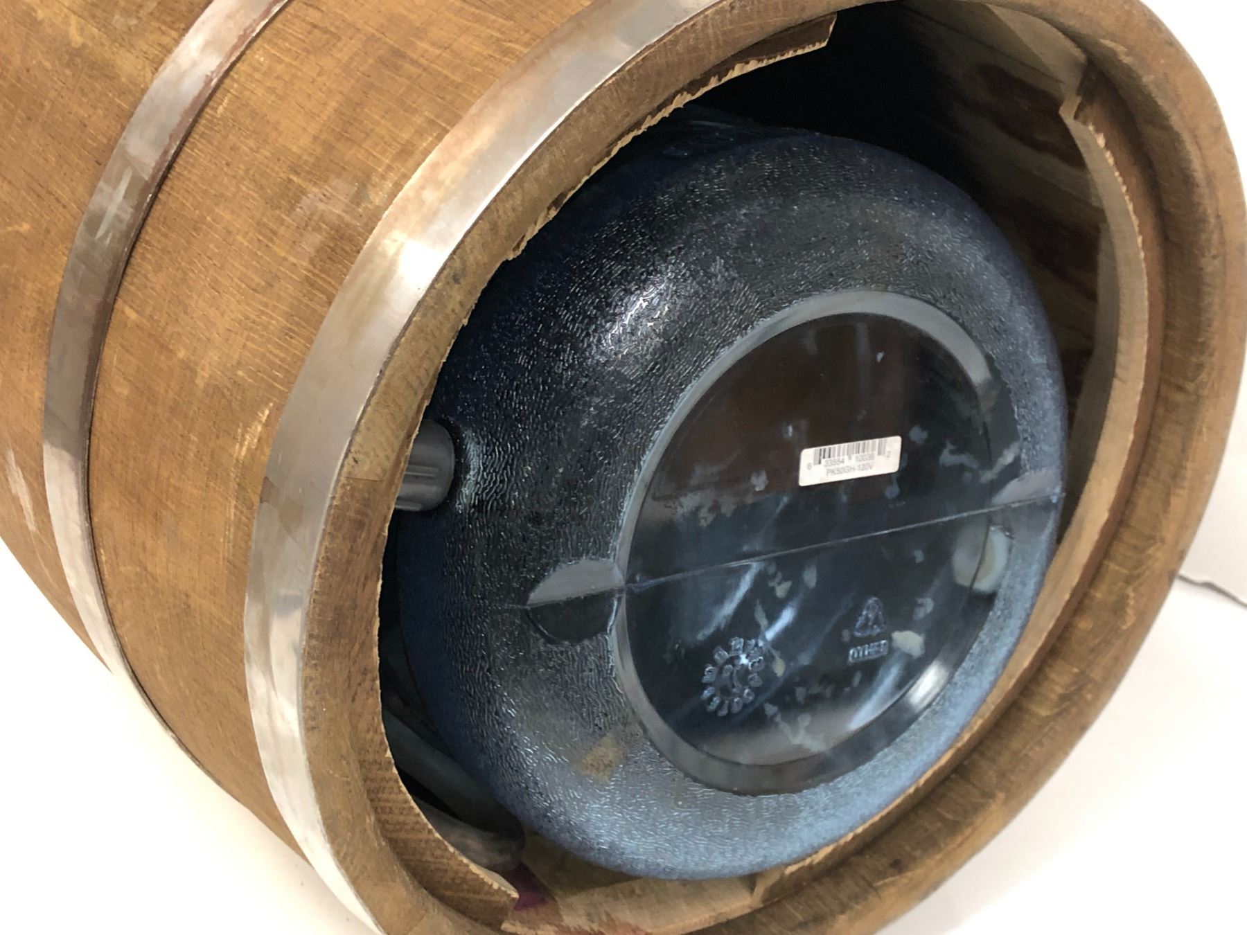 Oak liqueur barrel w/ tap from movie set - modified w/ 5 gallon water bottle insert - 21in x 15in