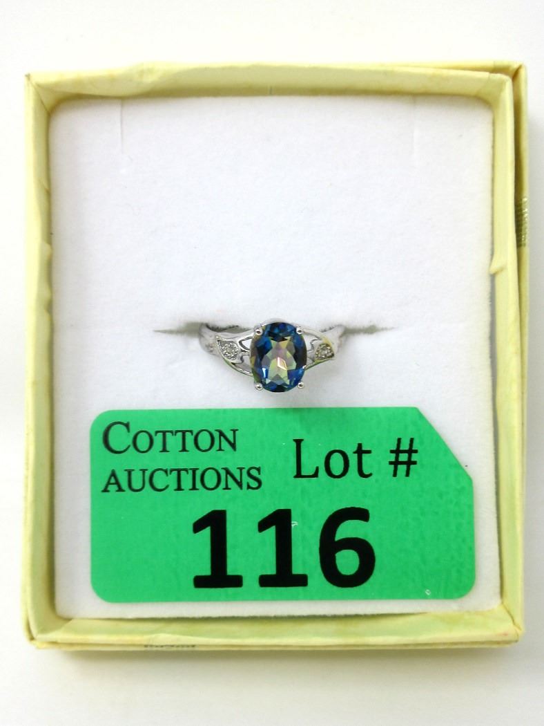 Oval cut center topaz with 2 diamonds set in sterling silver. Retail value $275.