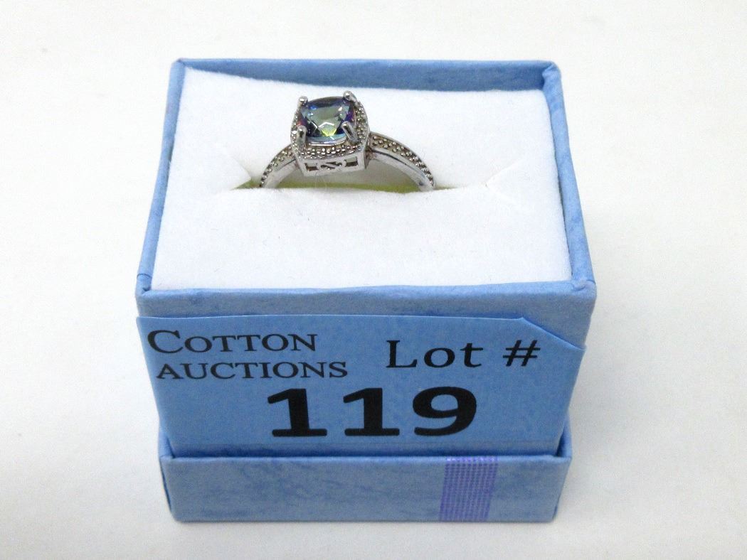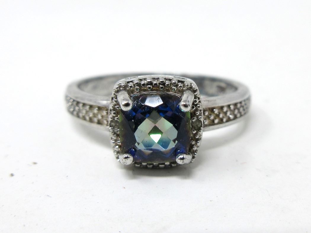 Princess cut topaz & 2 side diamonds set in sterling silver. Retail value $250.