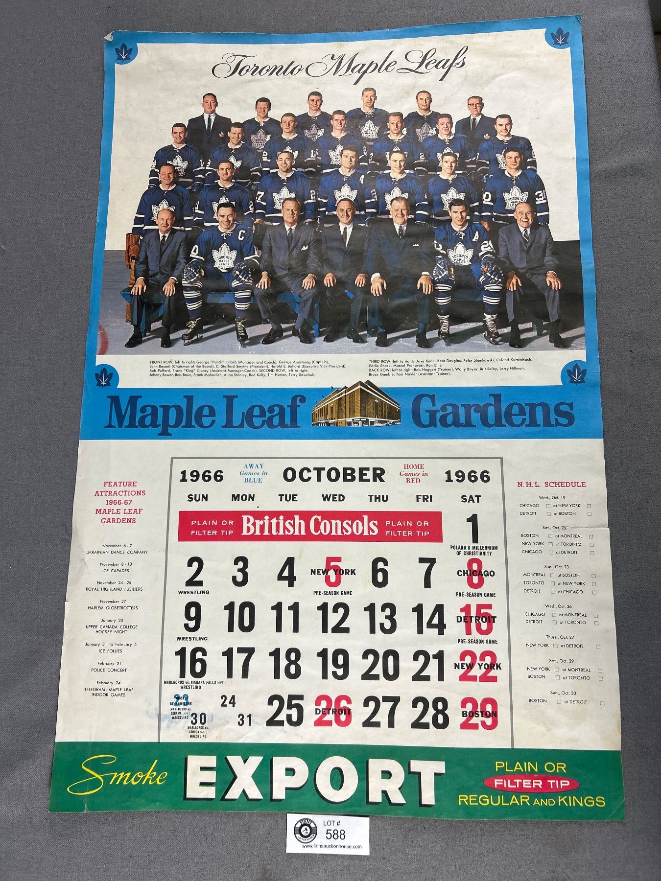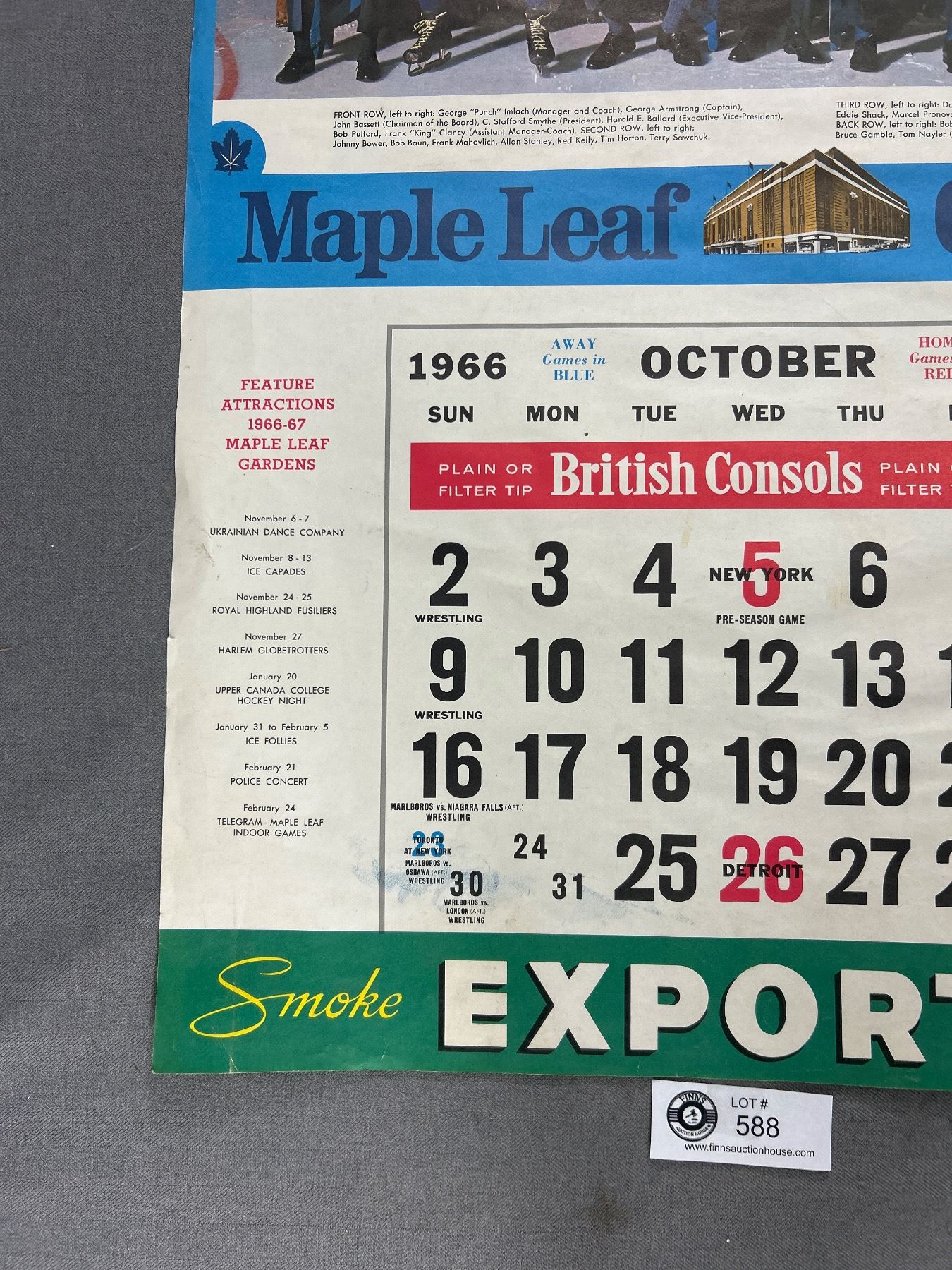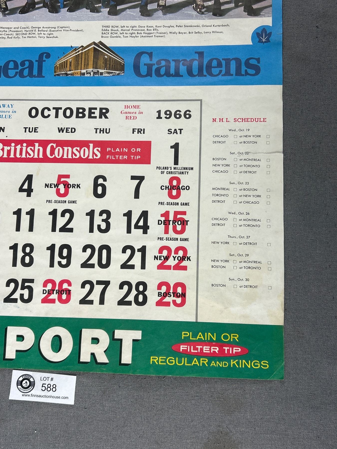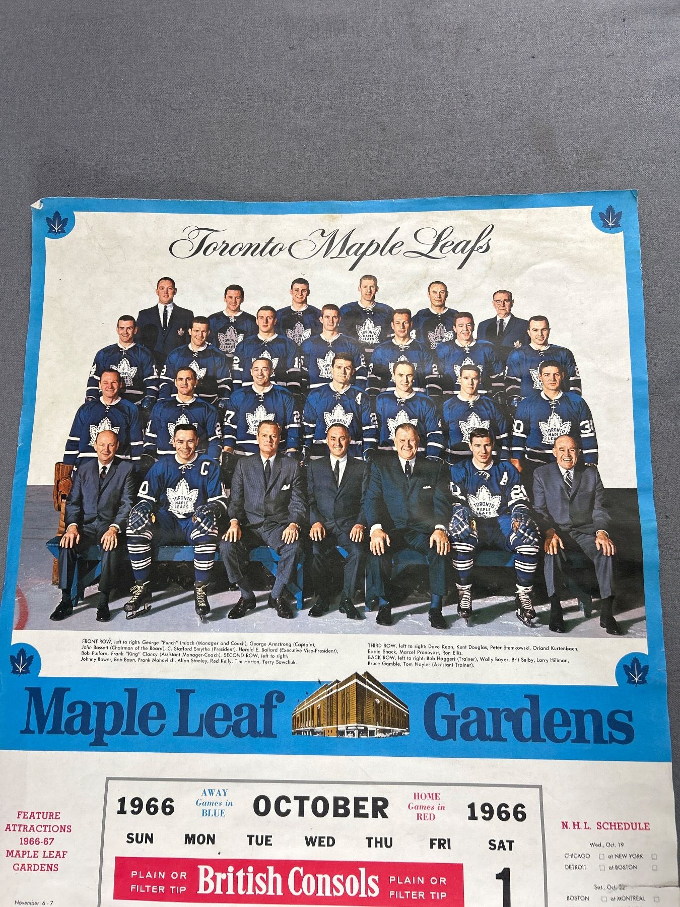 October 1966 Toronto Maple Leafs Calendar Page. Approx. 16.5'" x 25.25"
