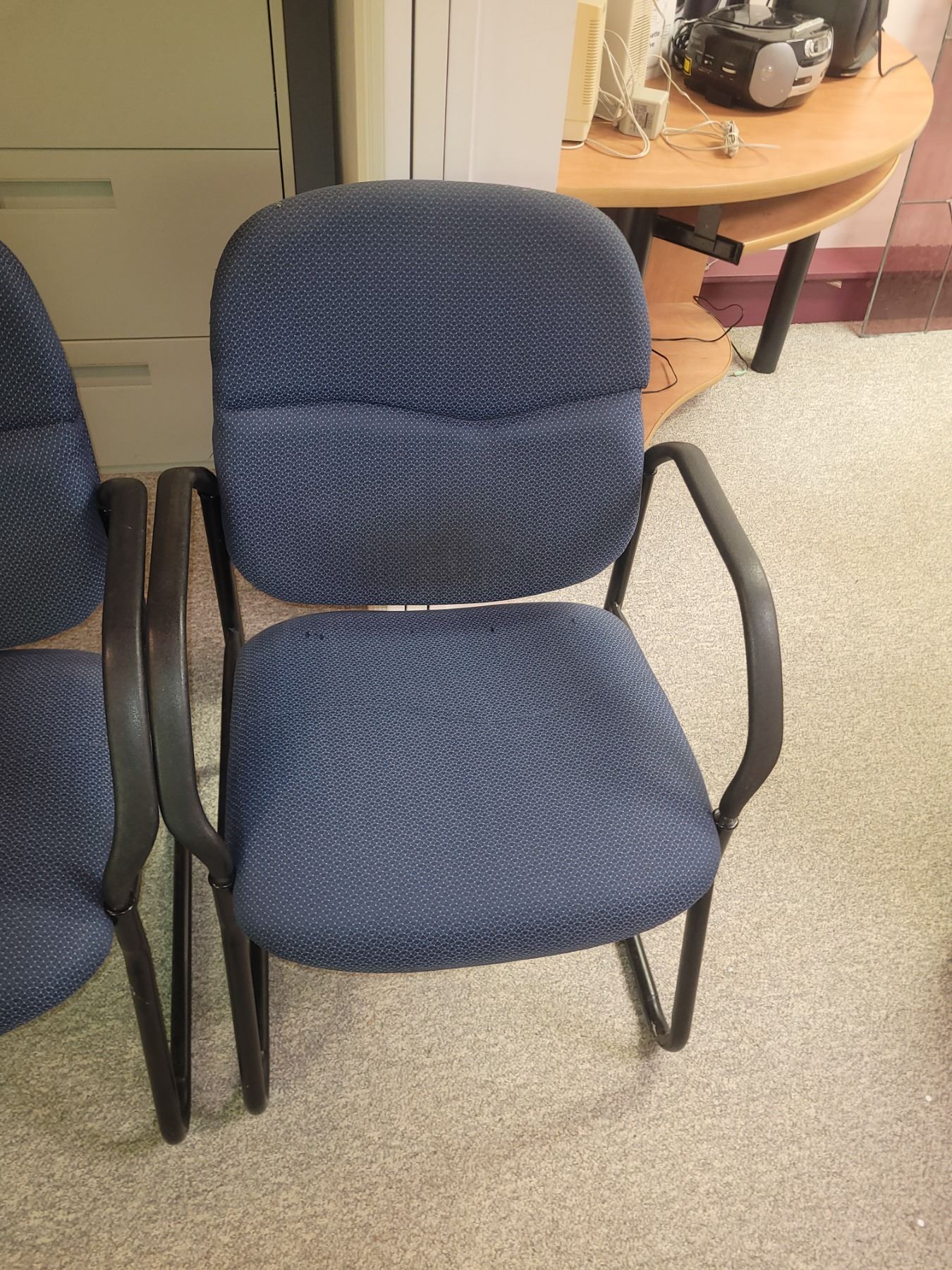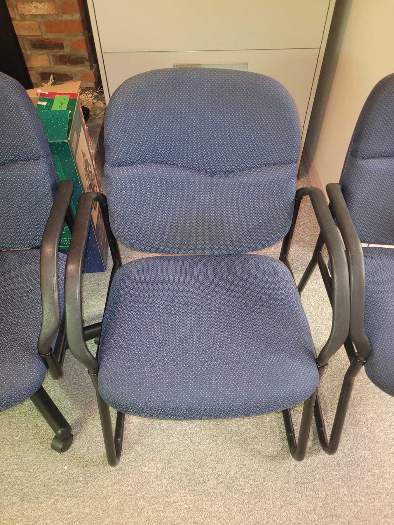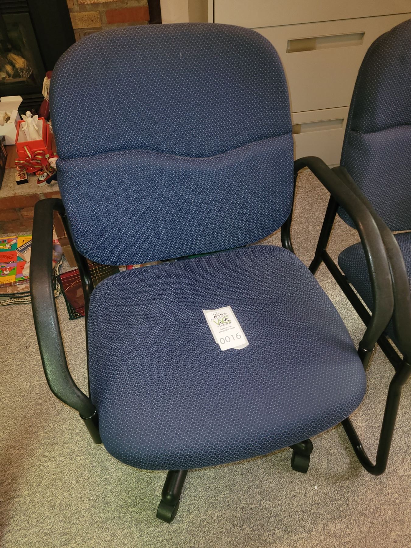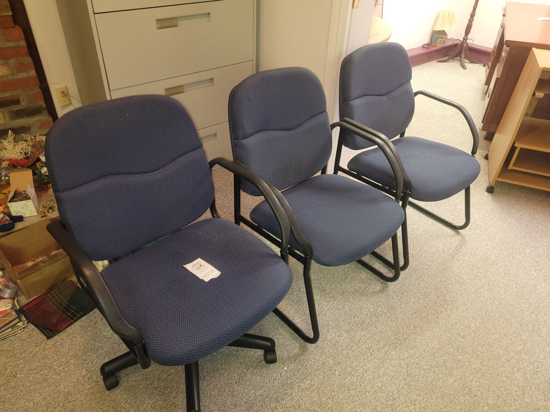 One swivel, adjustable office chair, 2 conference chairs, 24x25x36. Pick up 9-10
