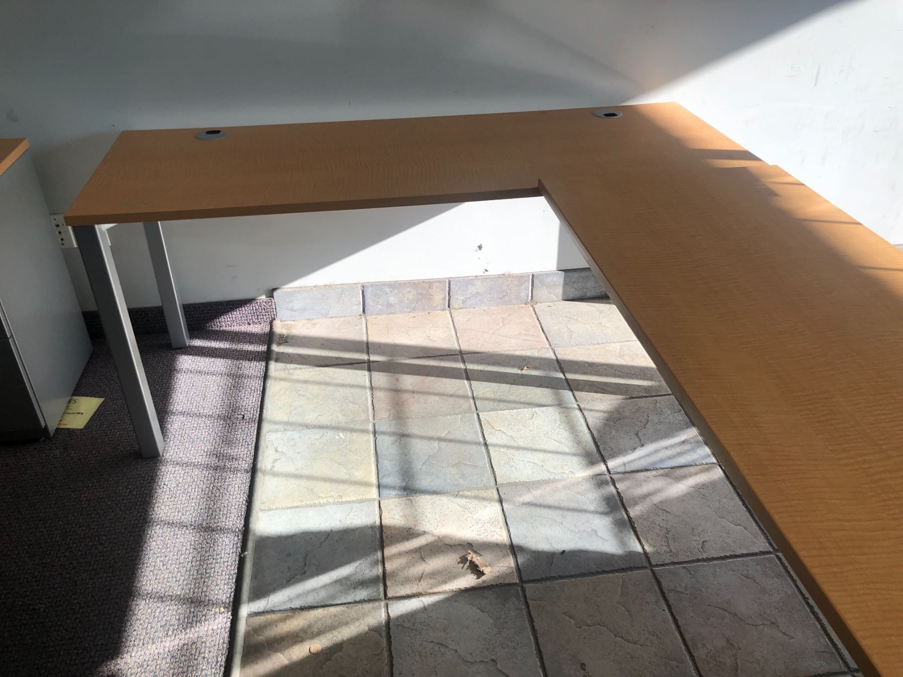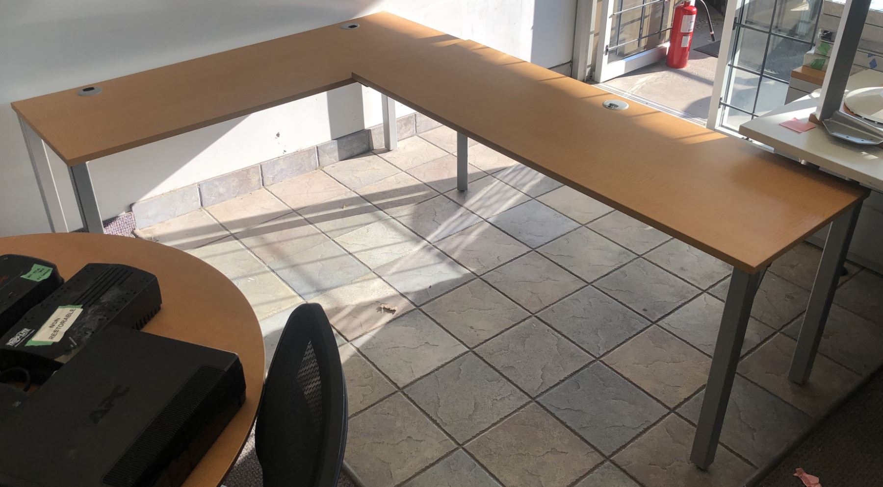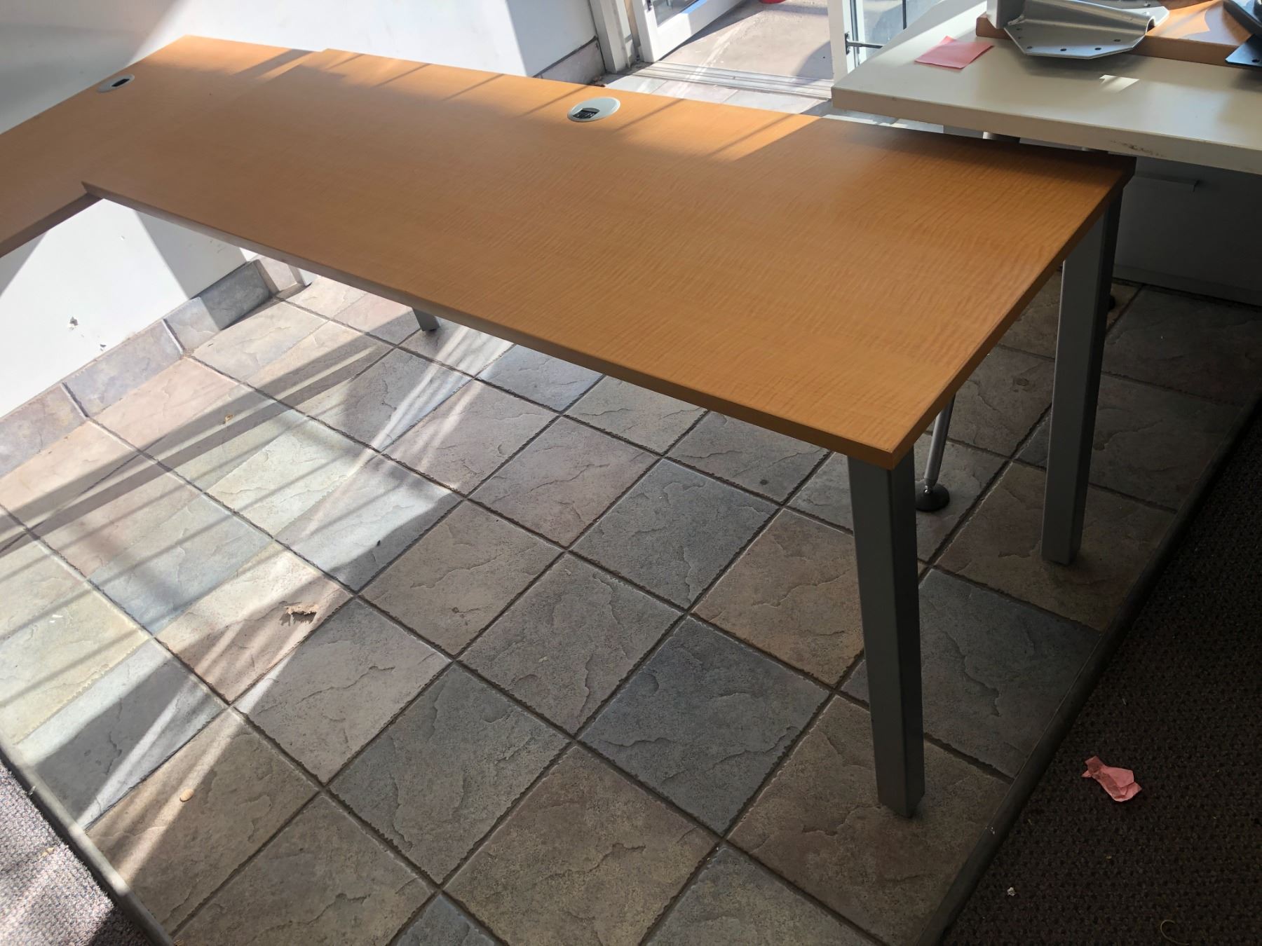 Office wood & metal L shaped 2 pc desk (each piece approx. 66in wide x 24in depth x 28in height)