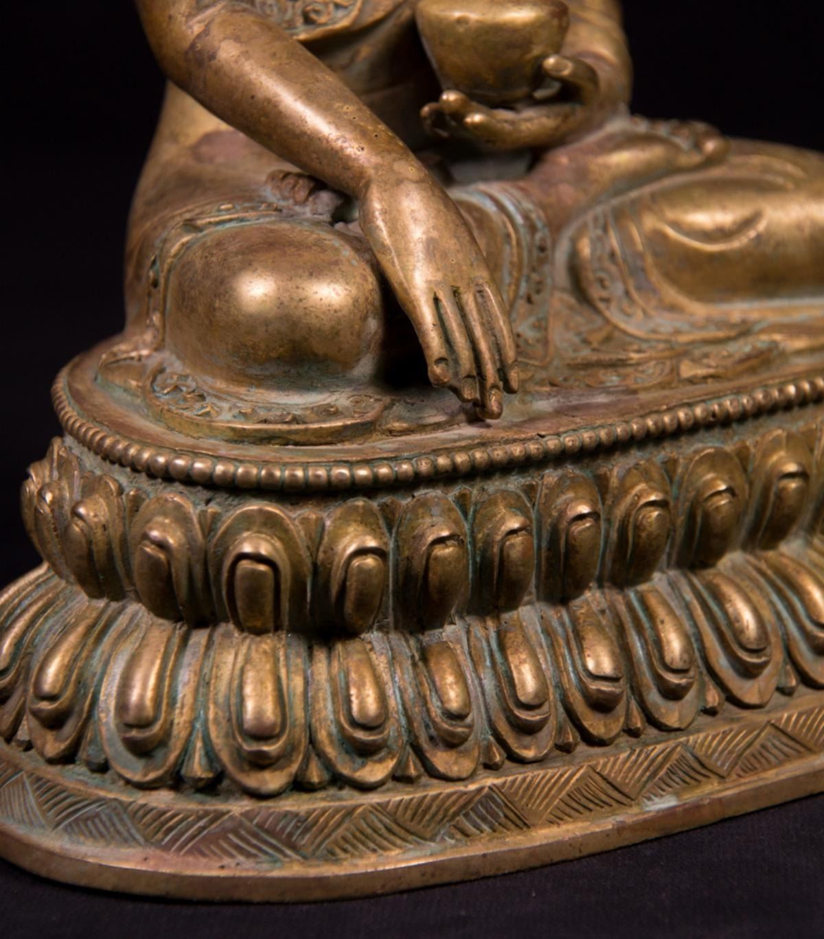 Old Buddha Statue.....made of Brass....21.5 CM height, 16.5 CM Wide, Bhumisparsha Mudra, Origin - Nepal