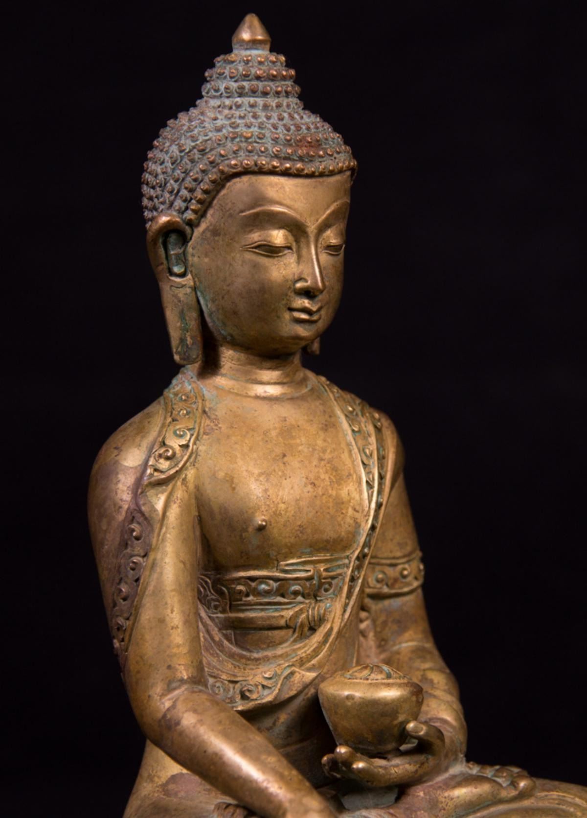 Old Buddha Statue.....made of Brass....21.5 CM height, 16.5 CM Wide, Bhumisparsha Mudra, Origin - Nepal