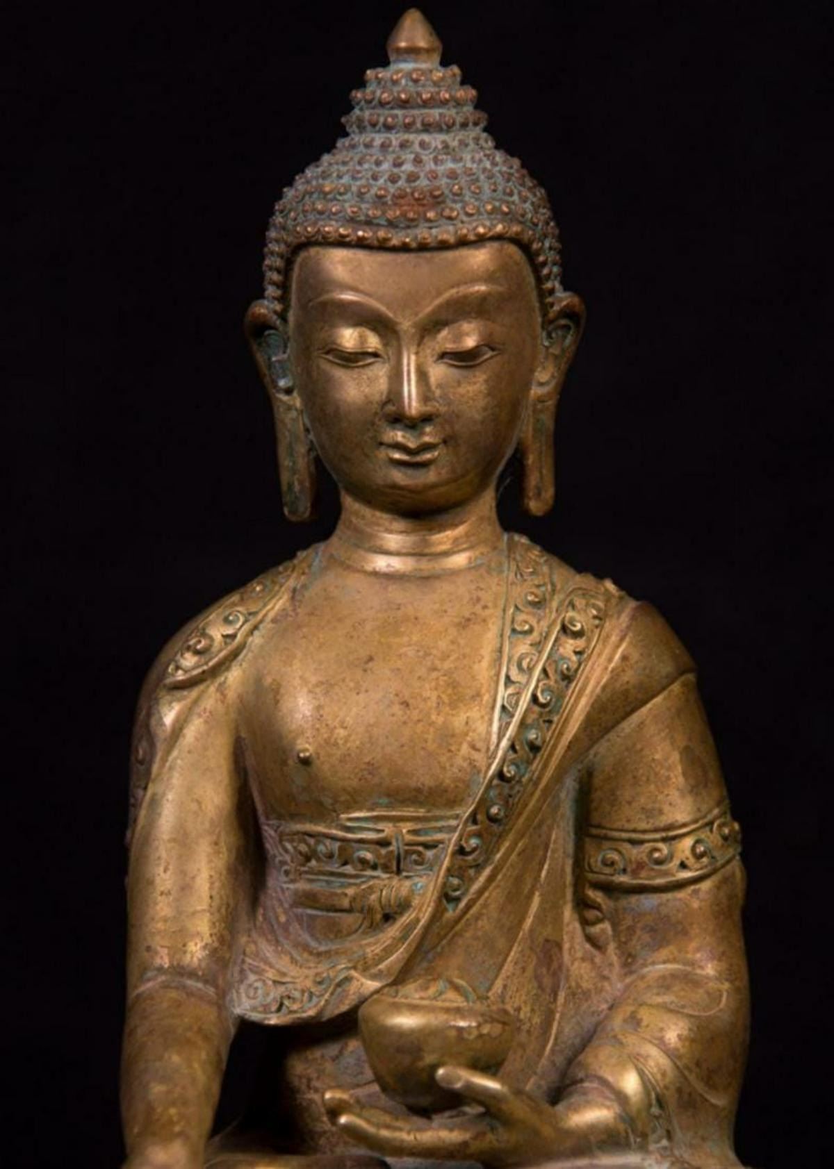 Old Buddha Statue.....made of Brass....21.5 CM height, 16.5 CM Wide, Bhumisparsha Mudra, Origin - Nepal