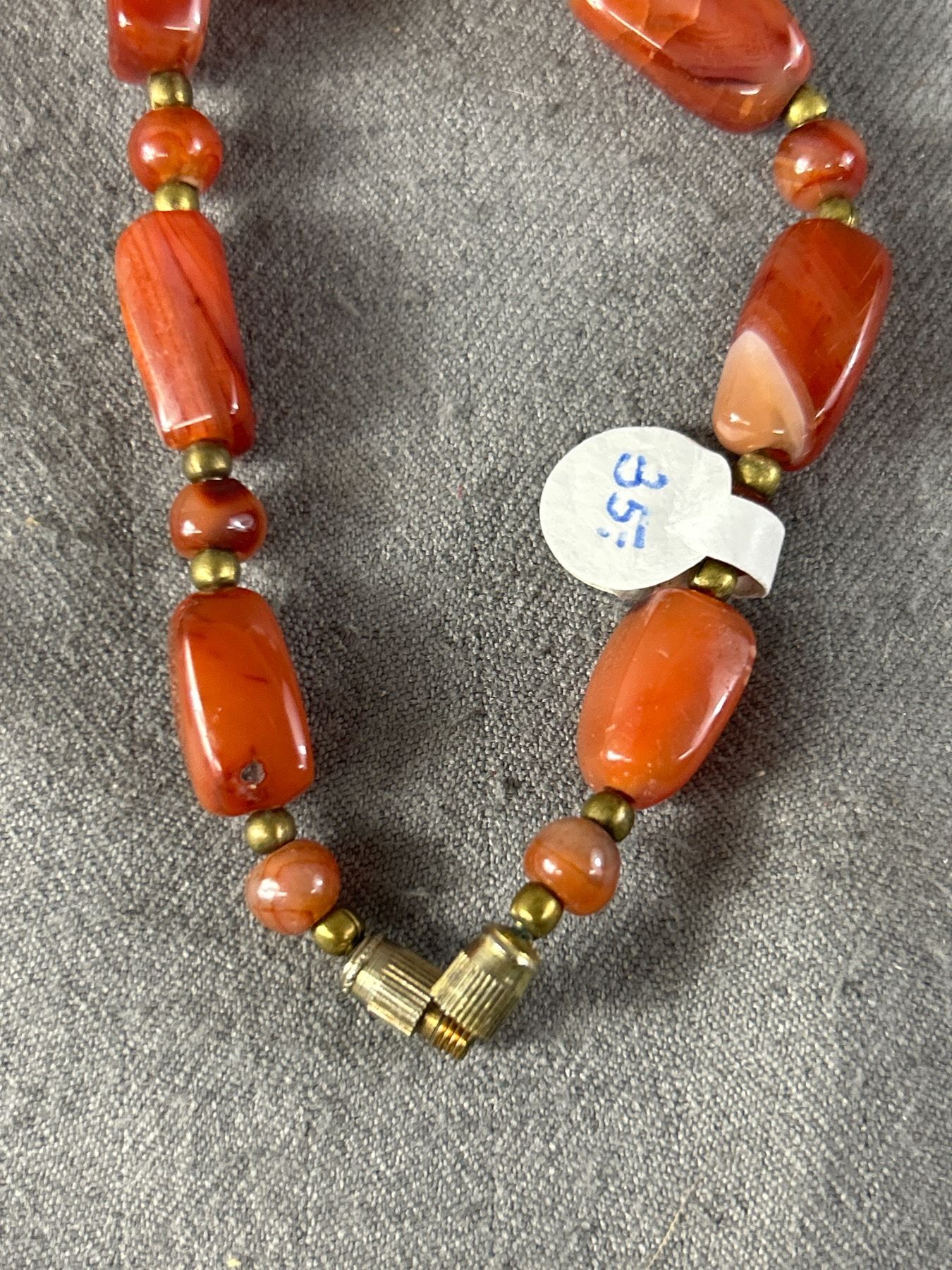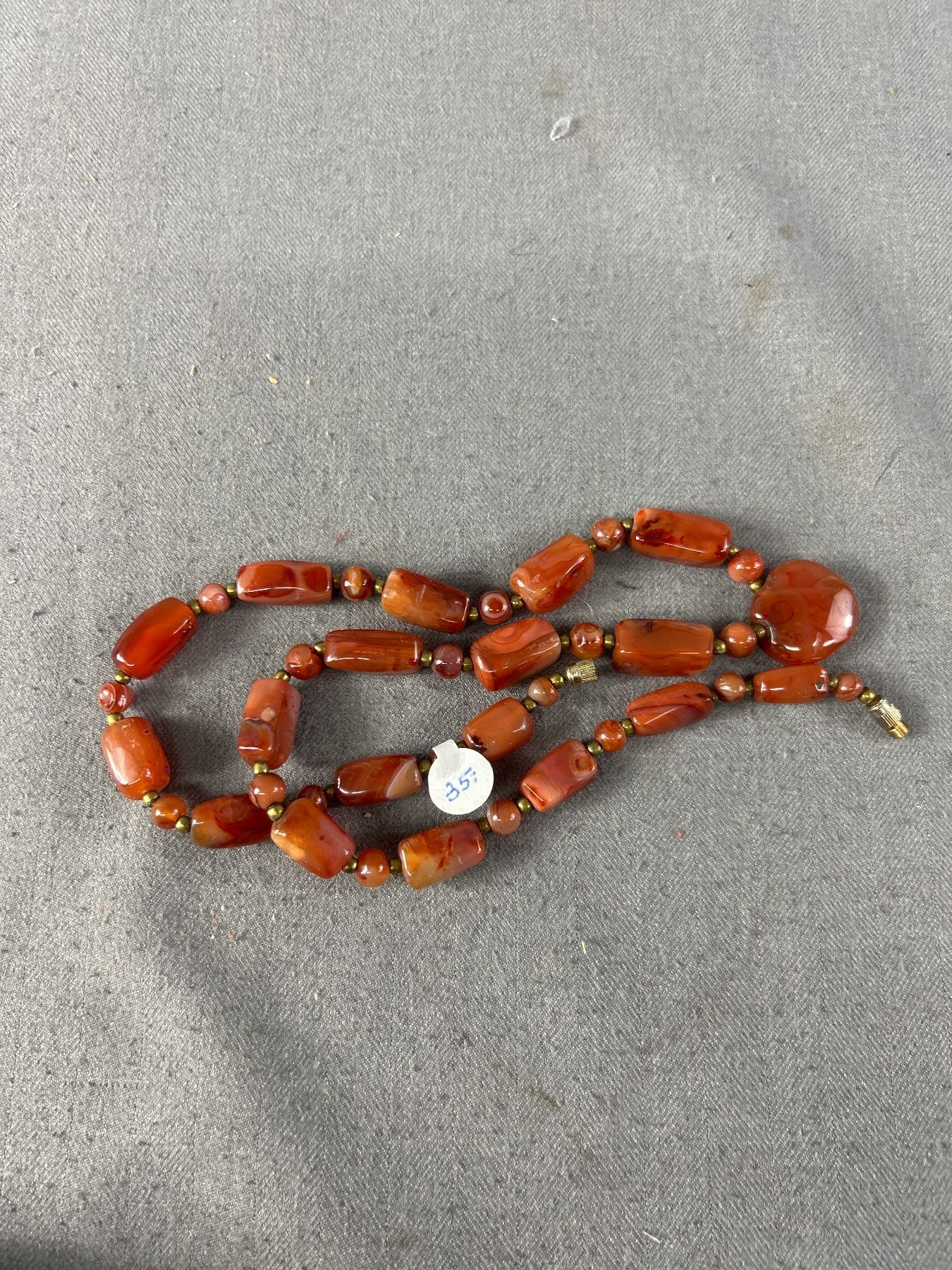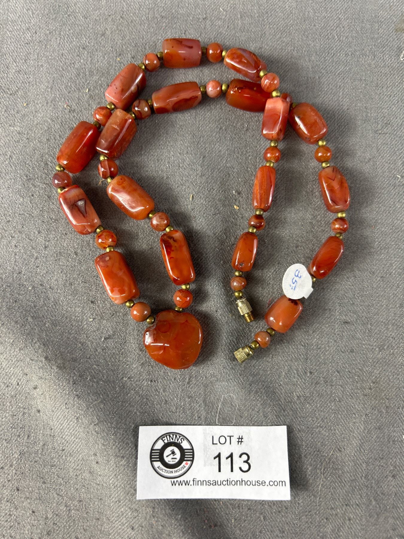 Old Carnelian Stone 24" L Necklace w/ 1" Heart Pendant.