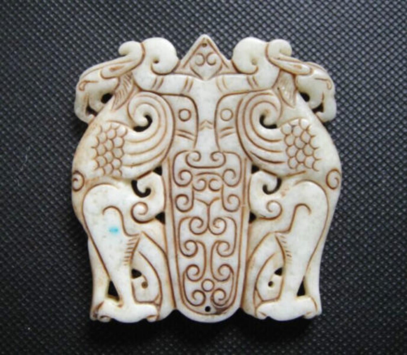 Old China White jade hand-carved phoenix Pendant....Height:67mmWidth:63mmDepth:7mmWeight:51g