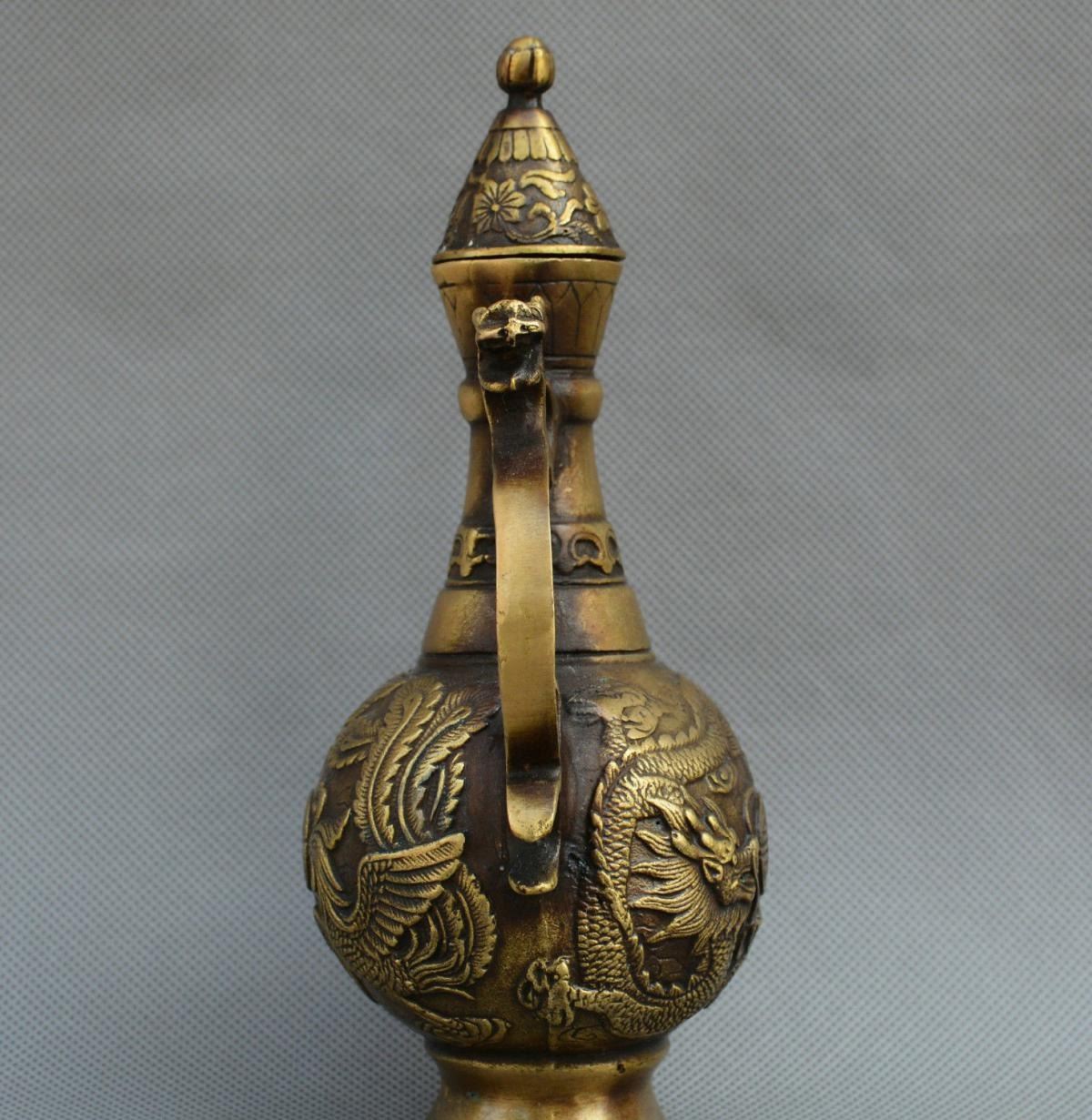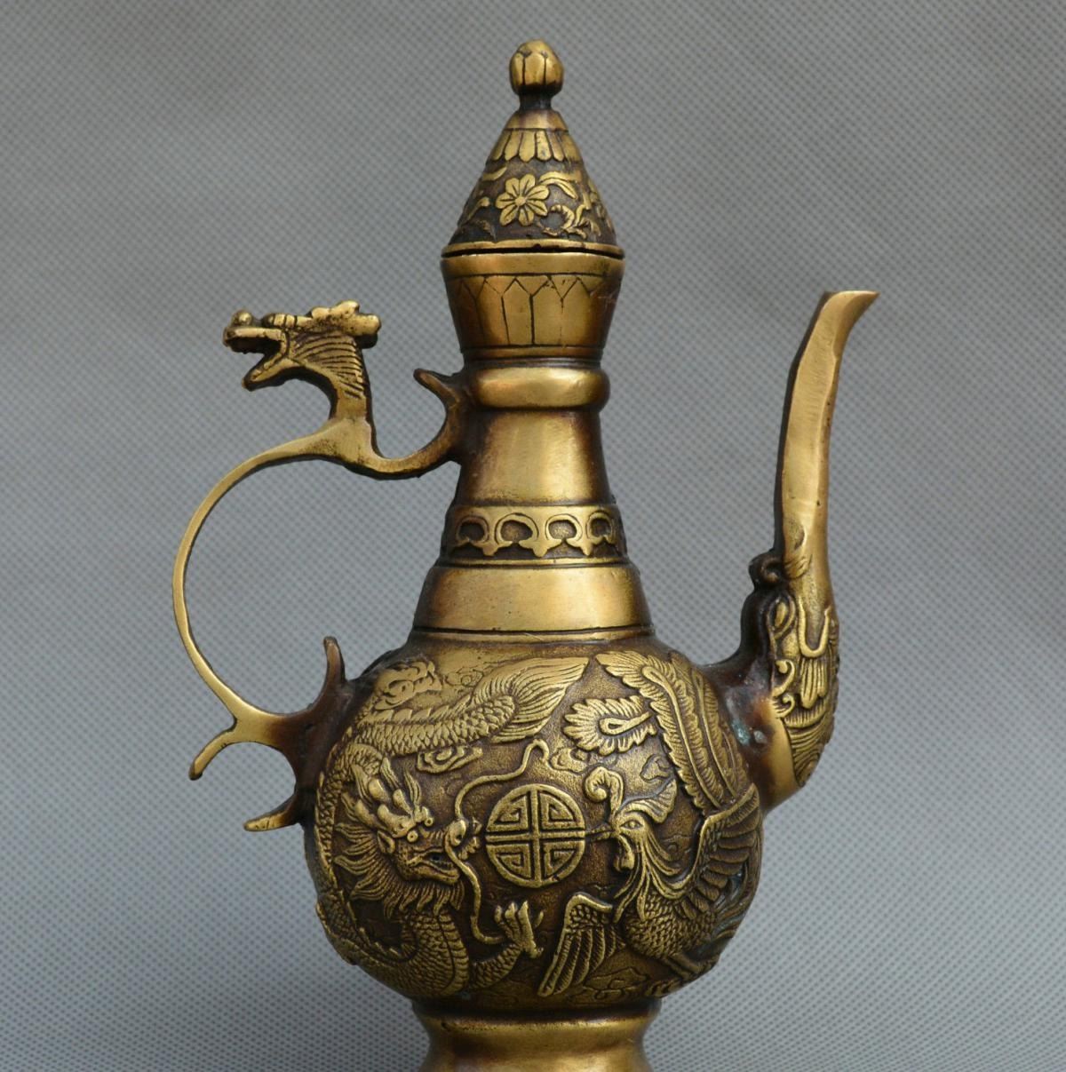 Old Chinese Bronze Dragon Phoenix Kettle.......Size:205MM*145MM*80MM