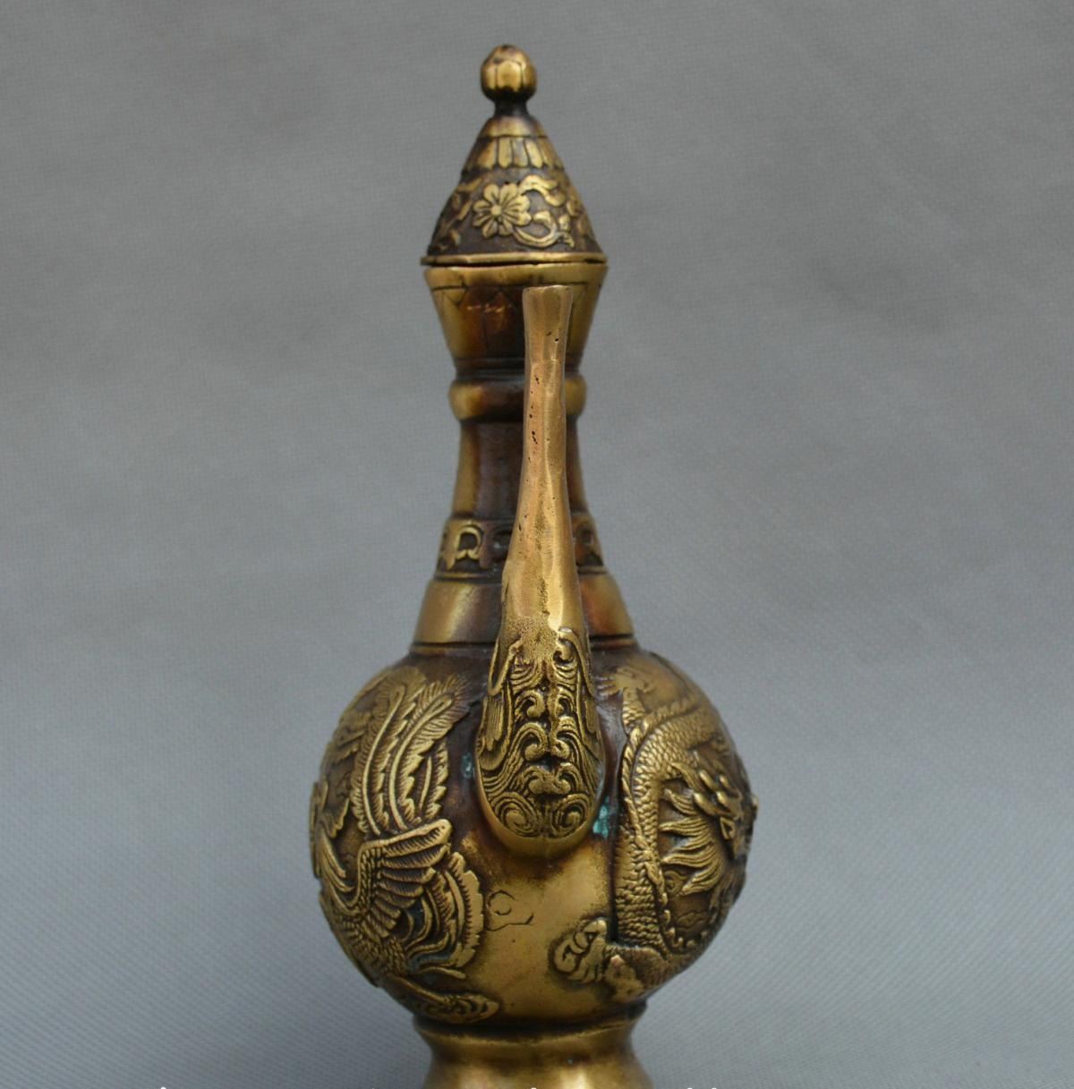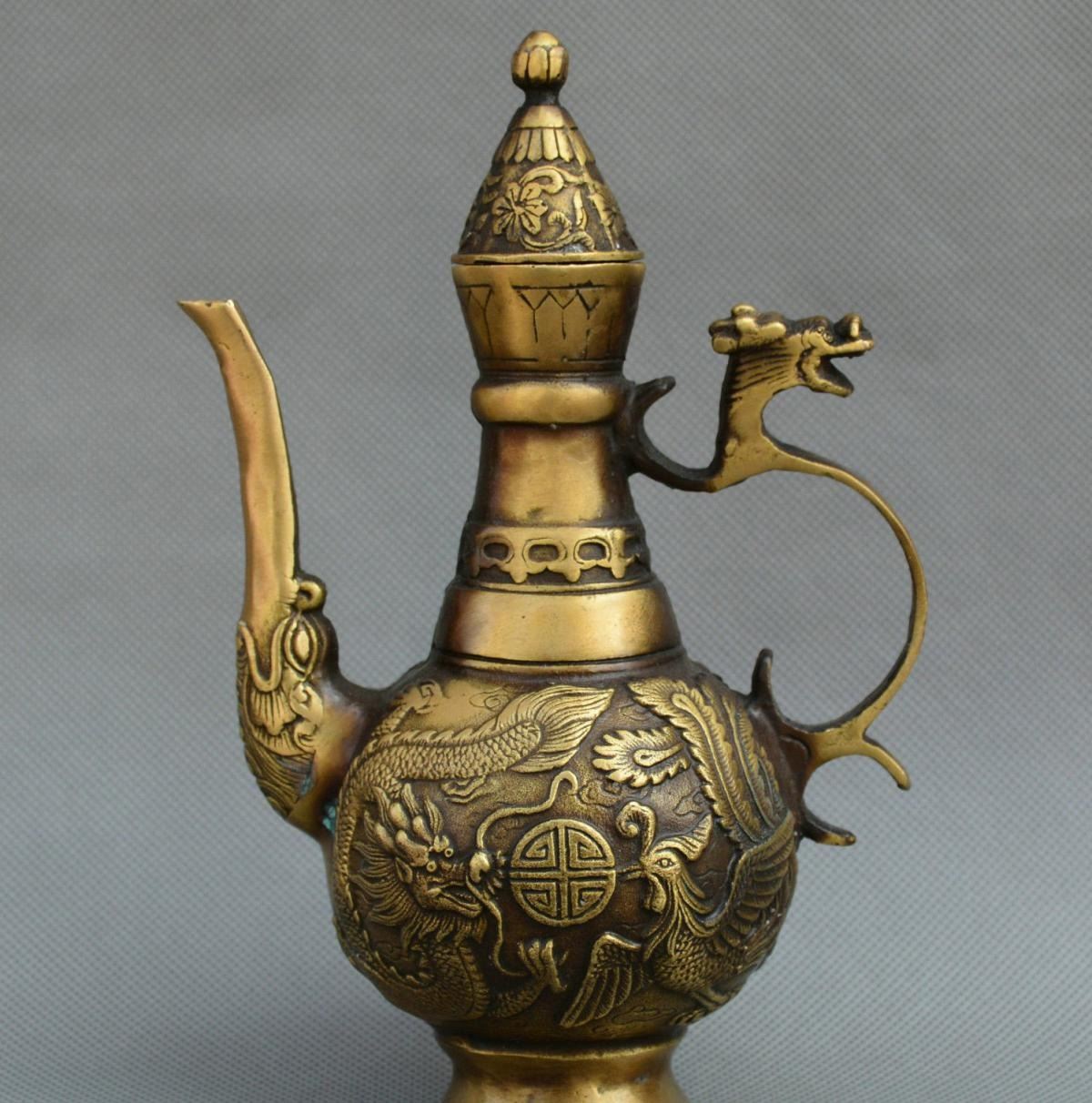 Old Chinese Bronze Dragon Phoenix Kettle.......Size:205MM*145MM*80MM
