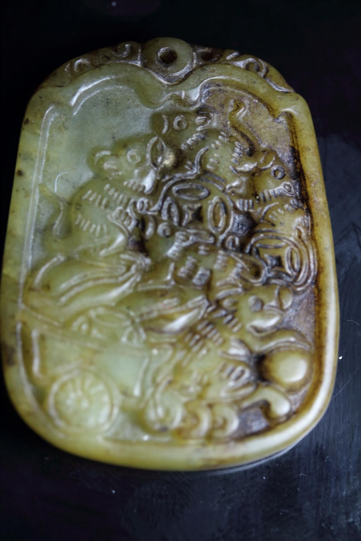 Old Chinese Jade Hand Carved Pendant...rat family stealing treasure.....