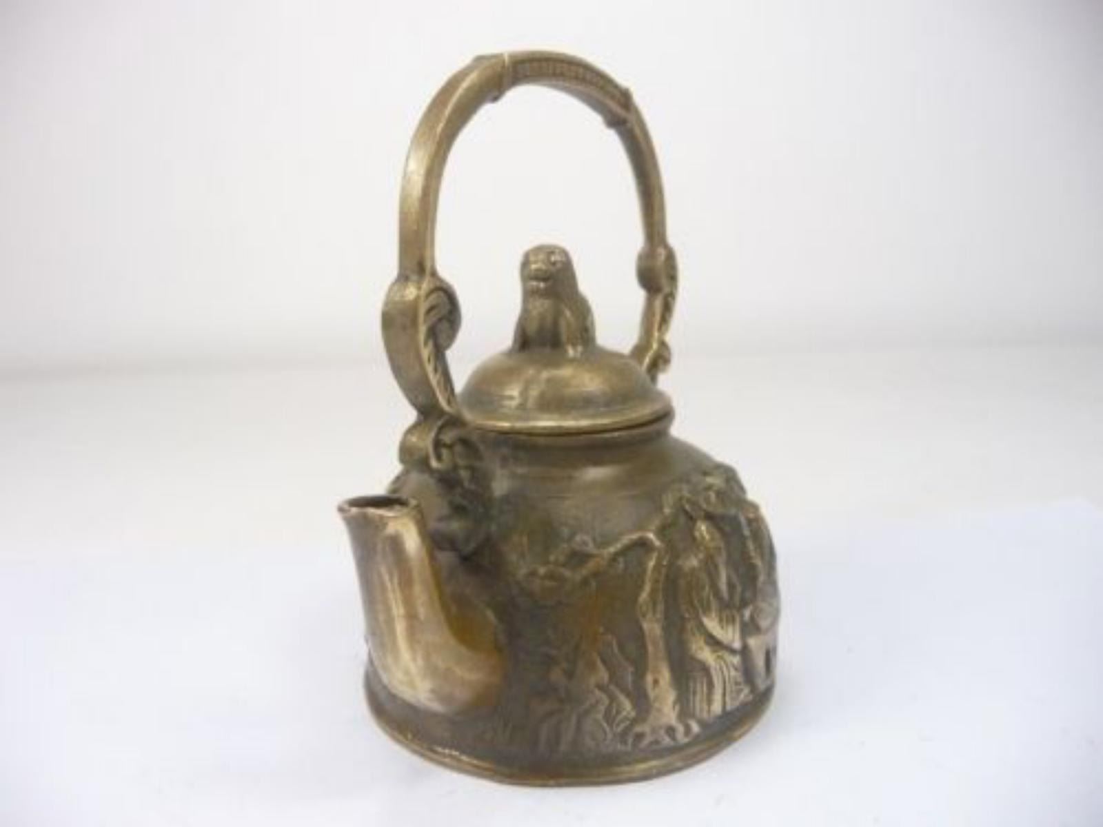 Description: Antique Chinese Copper Teapot/winepot;Material: Copper bronze;(L x W x H)Size: (10.8 X 8.2 X 11)CM