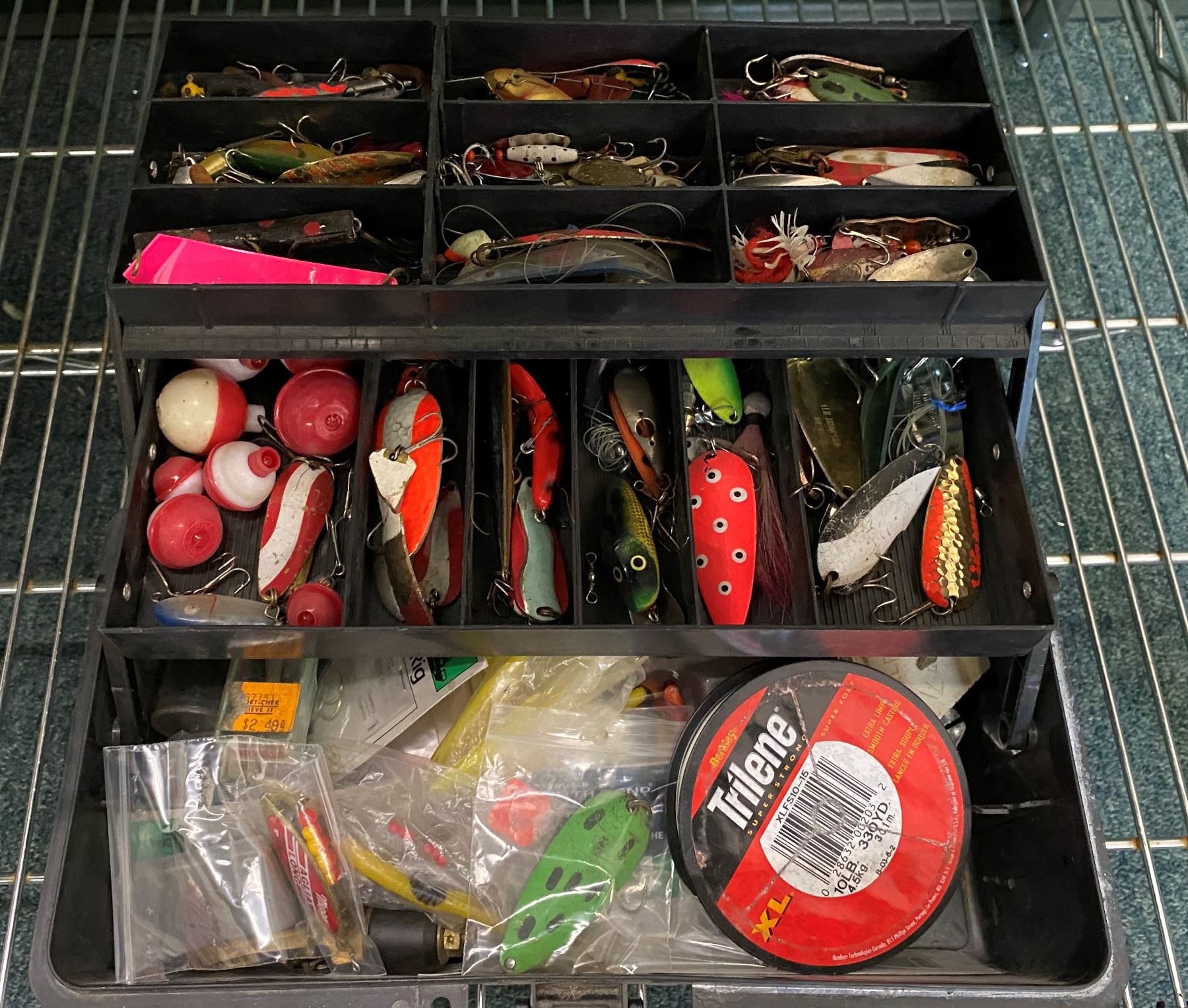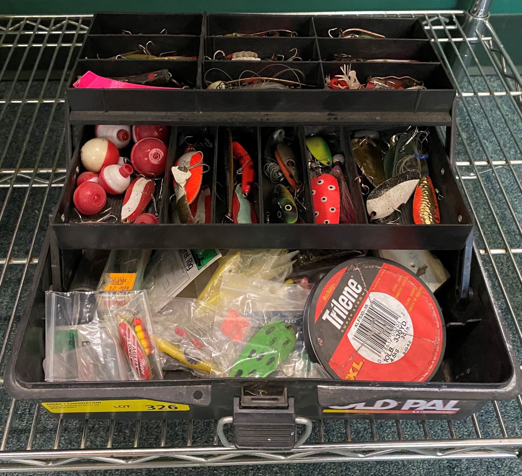 Old Pal tackle box & contents (mostly fresh water tackle)