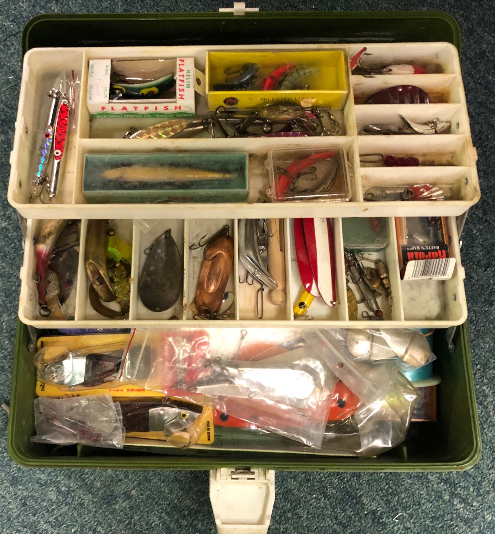 Old Pal tackle box & contents (mostly fresh water tackle)