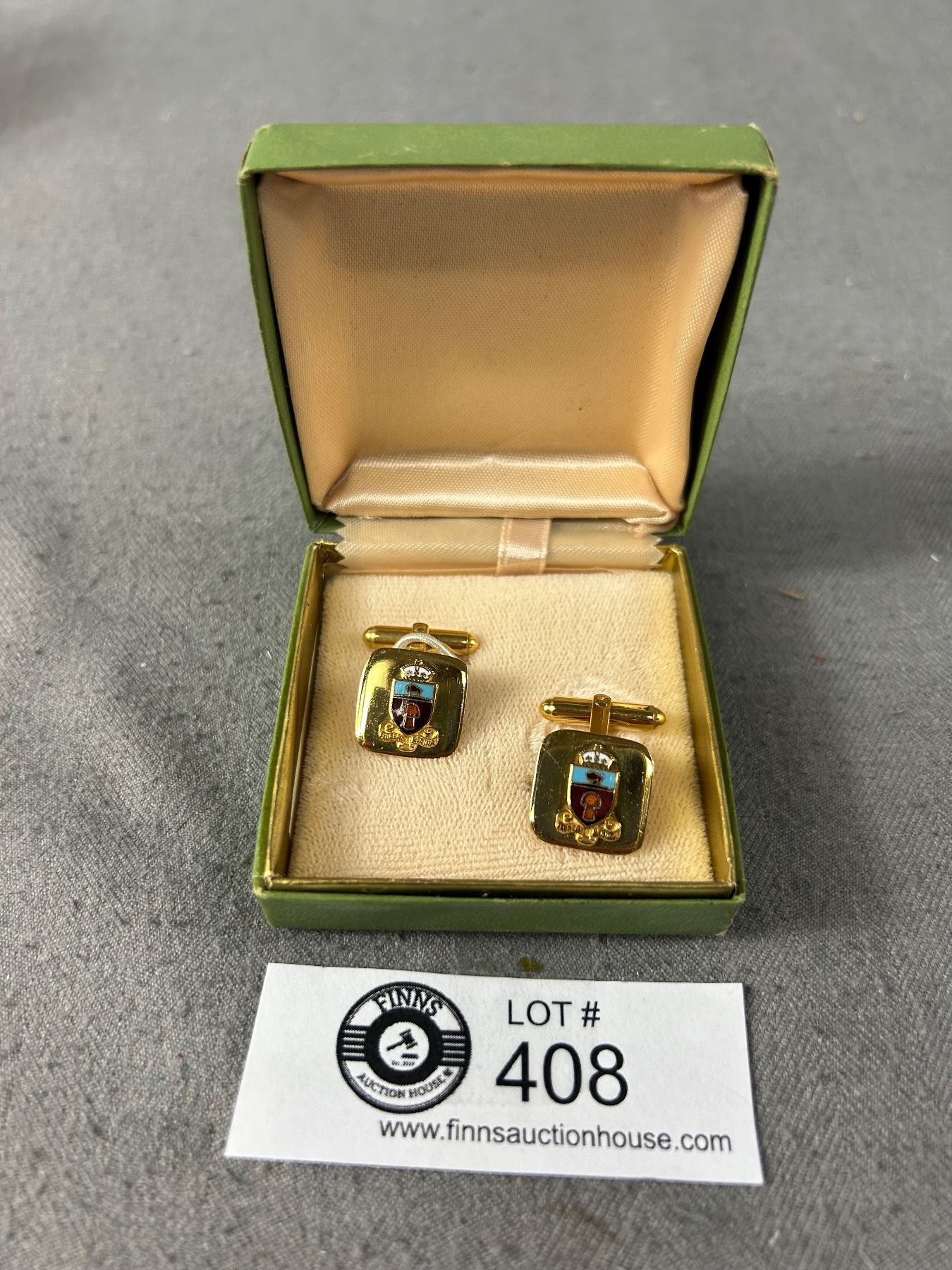 Old Solid Enamel Cufflinks Original Box in Excellent Condition