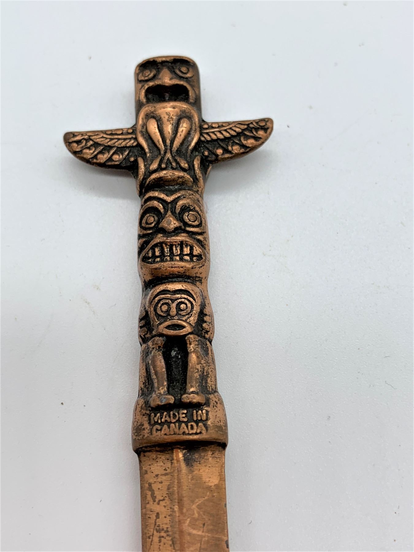 Old copper totem pole letter opener