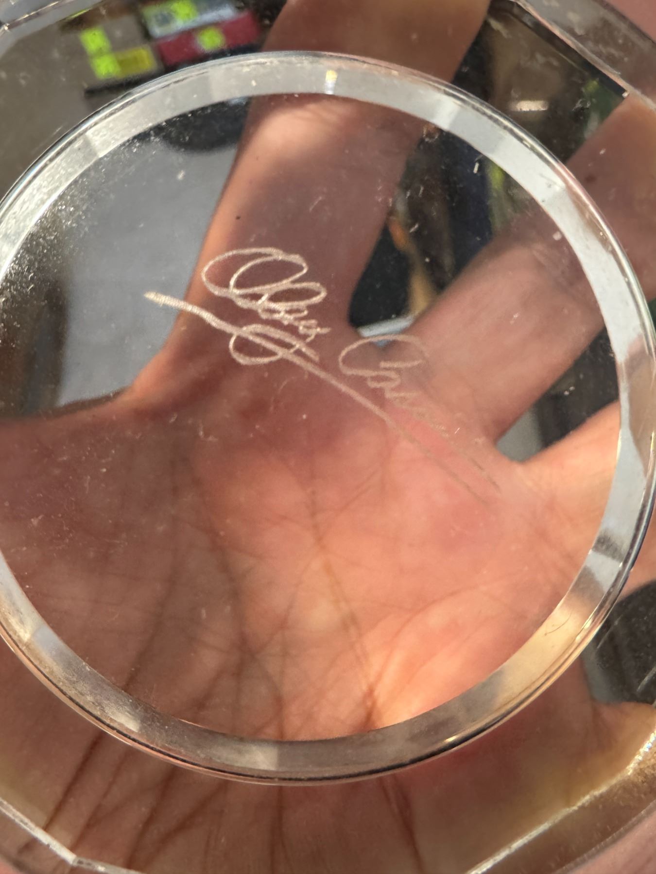 Oleg Cassini crystal pillar candle holder.