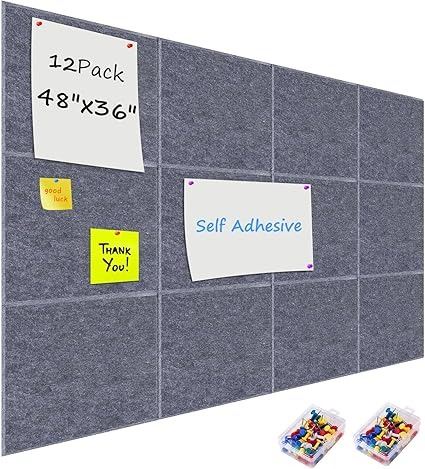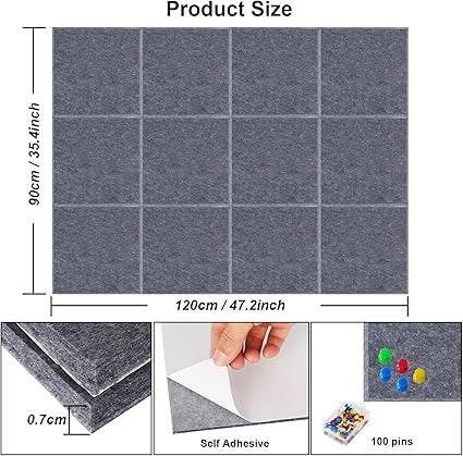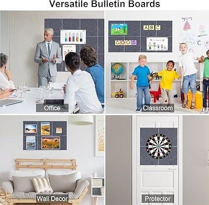 - Olyzer Felt Bulletin Board with 100 Push Pins, 6 Pack Large Cork Board for Walls, Self Adhesive Felt Wall Tiles for Home, Classroom, School & Office Decor (Dark Grey)
