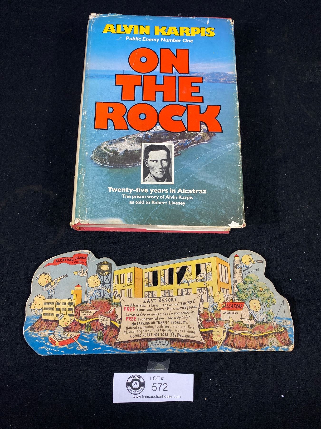 On the Rock Hardcover Book + Alcatraz Comical Postcard from 1952