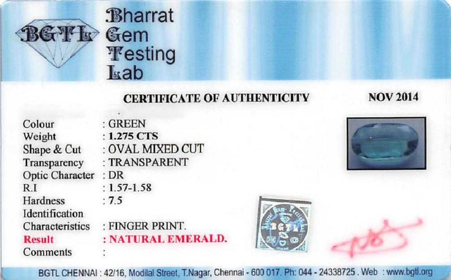 1.27ct Double Certified Emerald Oval Gemstone. Oval Cut Measuring 9.50 x 5.50 x 4.70mm.Ready To Mount. Please See Certifications For Further Details.