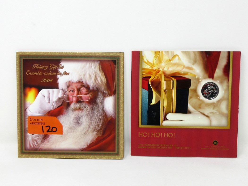 2004 1st Holiday gift set and 2006 Ho Ho Ho set with a 25¢ Santa coin in each.