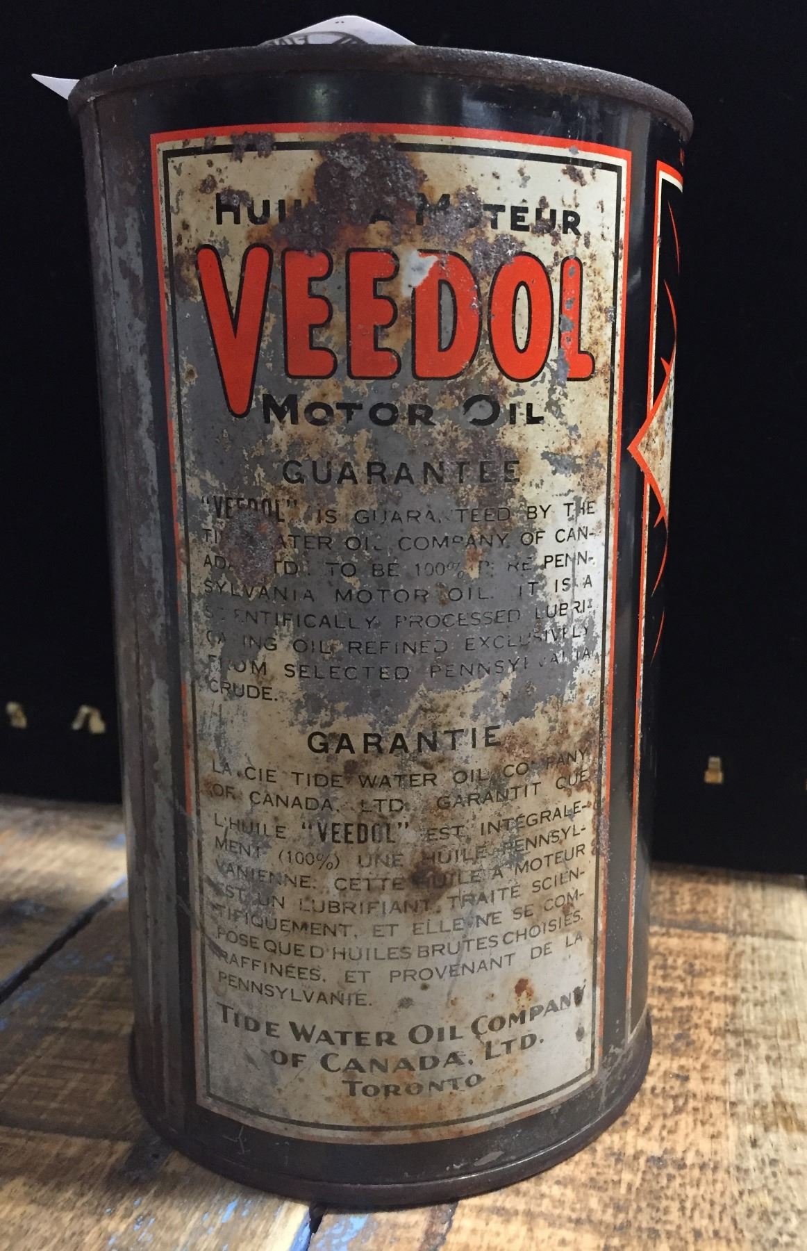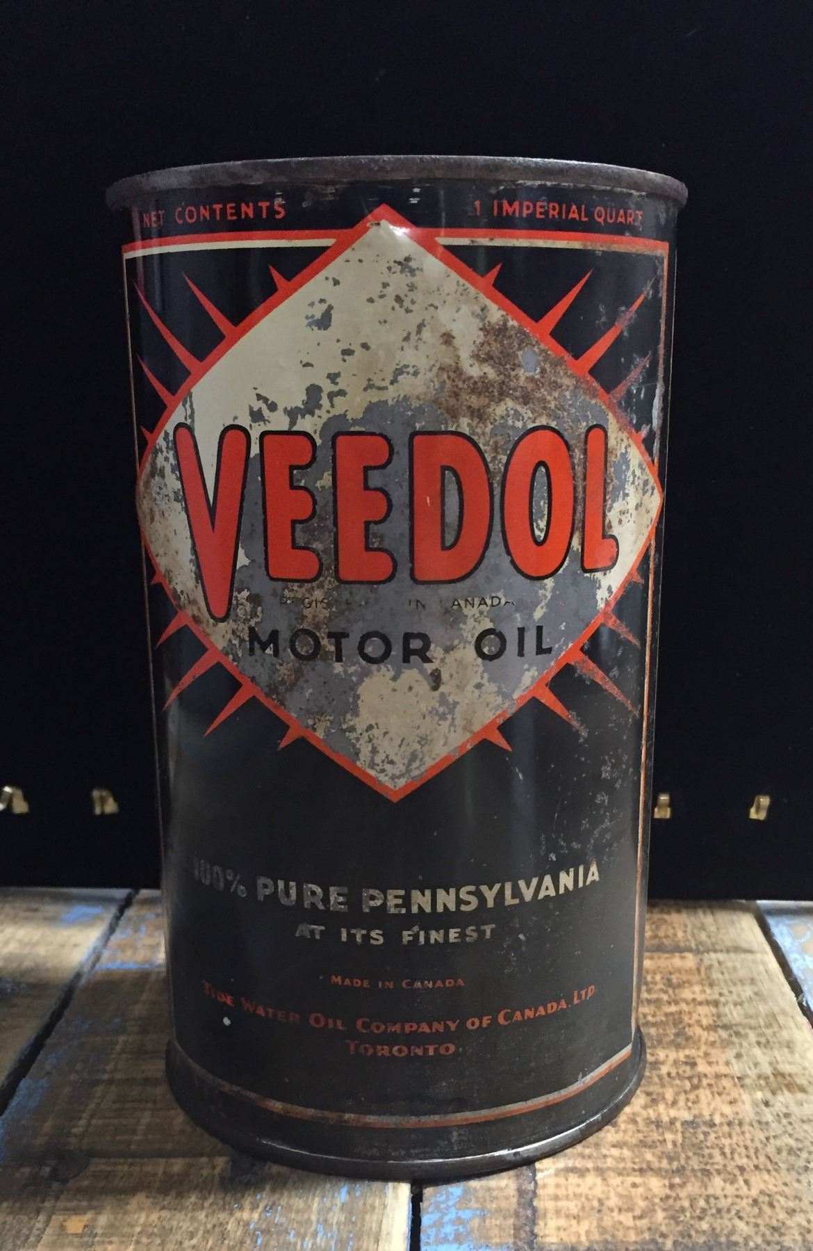 One Imperial Quart Vintage Veedol Motor Oil Tin