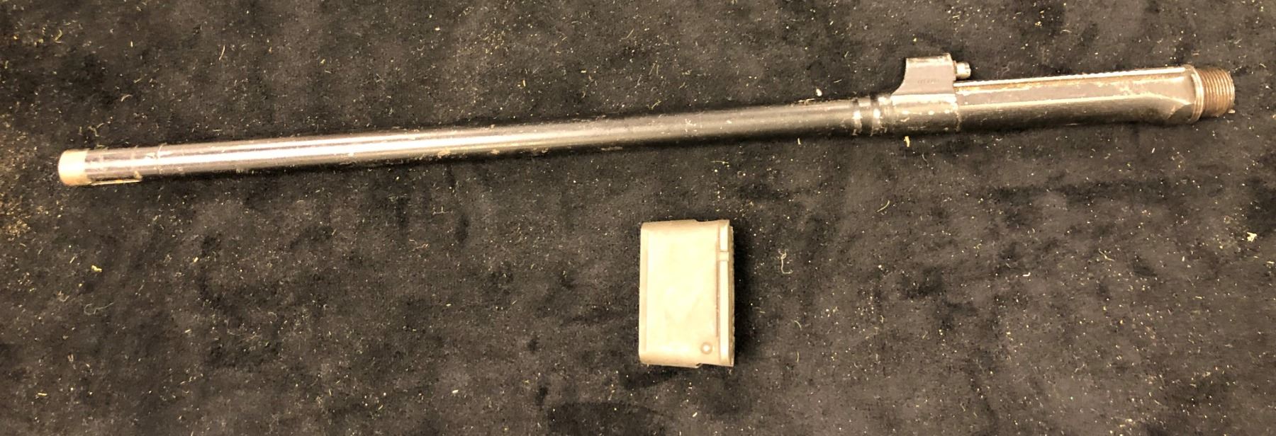 One M1 gun ammunition block & one deactivated M1 Carbine Rockola barrel