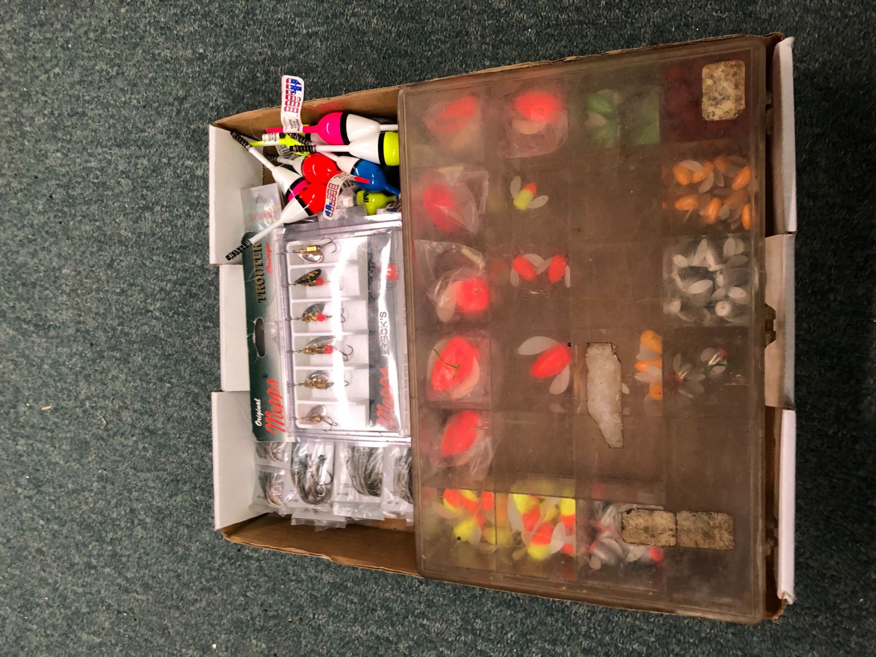 One box of assorted fresh water tackle - spinning glows, mepps etc.