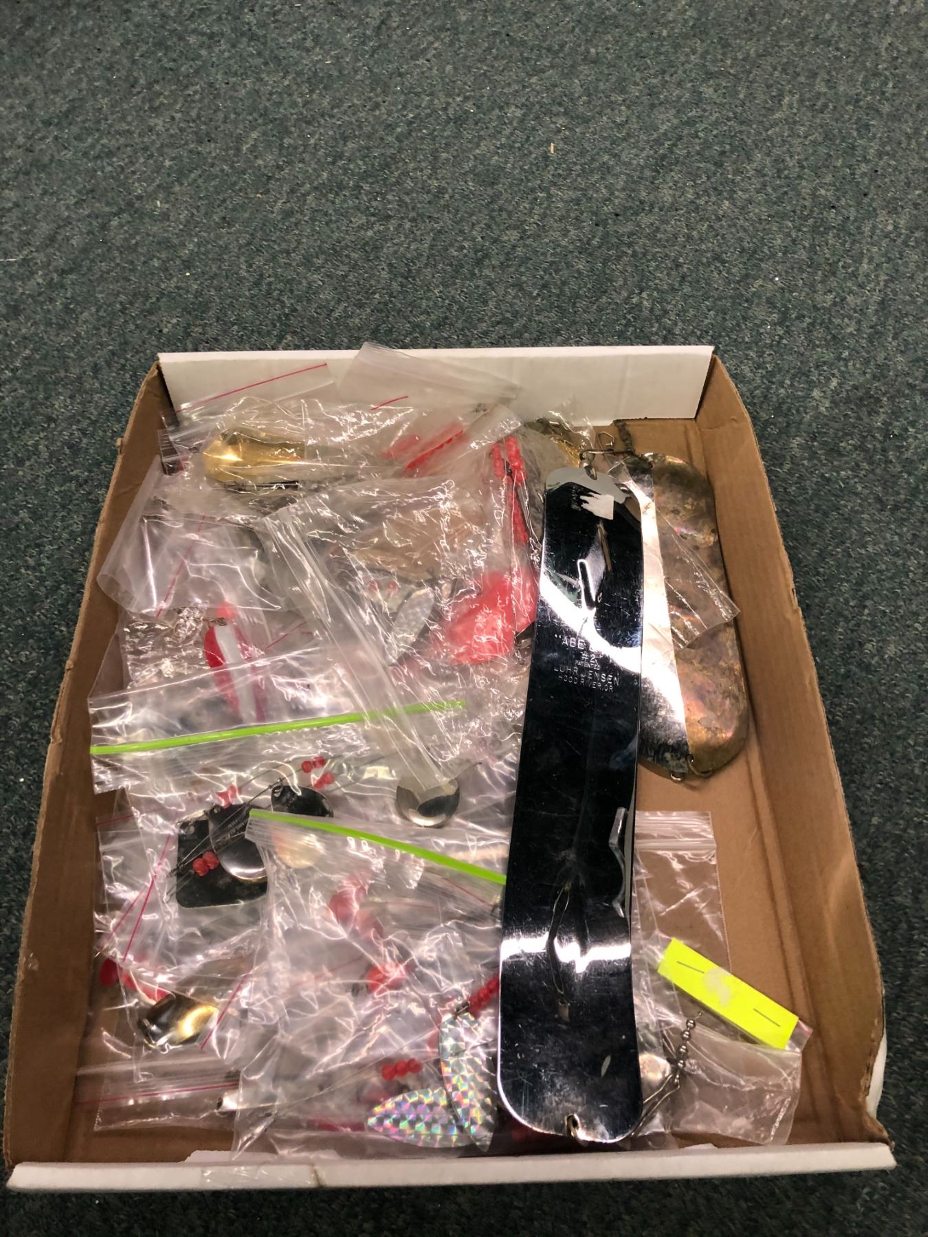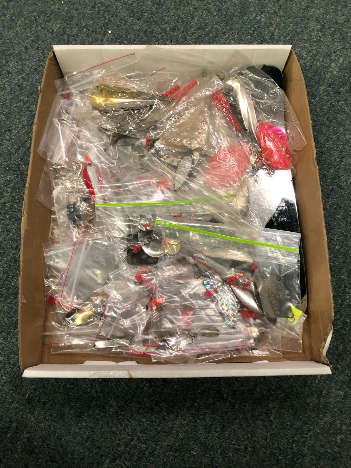 One box of assorted freshwater fishing tackle - gangtrolls, spoons, willow leaves etc.