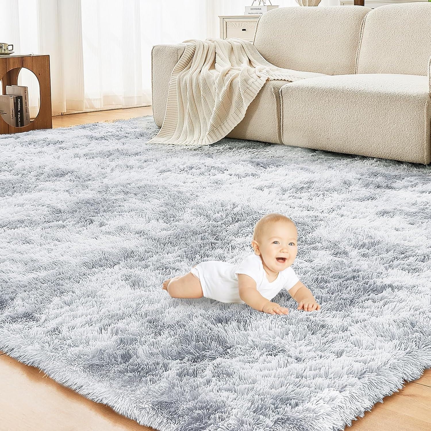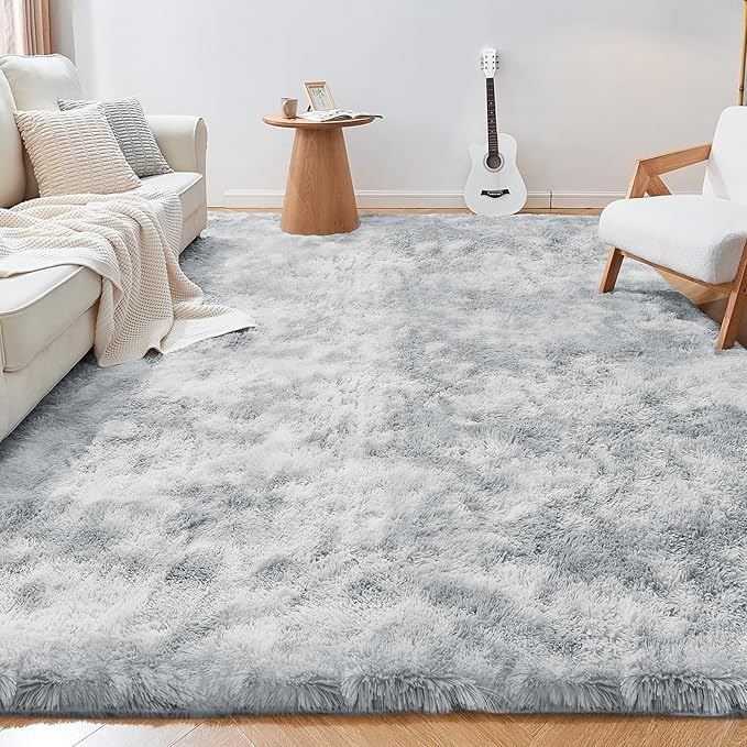 - OPPODREAM Area Rug 6x9 FT for Living Room, Ultra Soft Rug for Bedrooms, 6 x 9 Fluffy Kids Carpet with 0.4" Thick Non-Slip Backing, Long Pile Shag Carpet, Fuzzy, Shaggy, Tie-dye - Light Grey