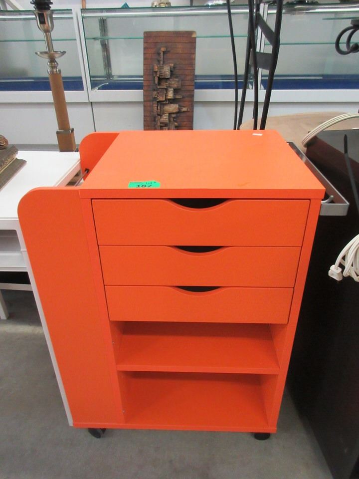 Orange Rolling Cabinet with Drawers