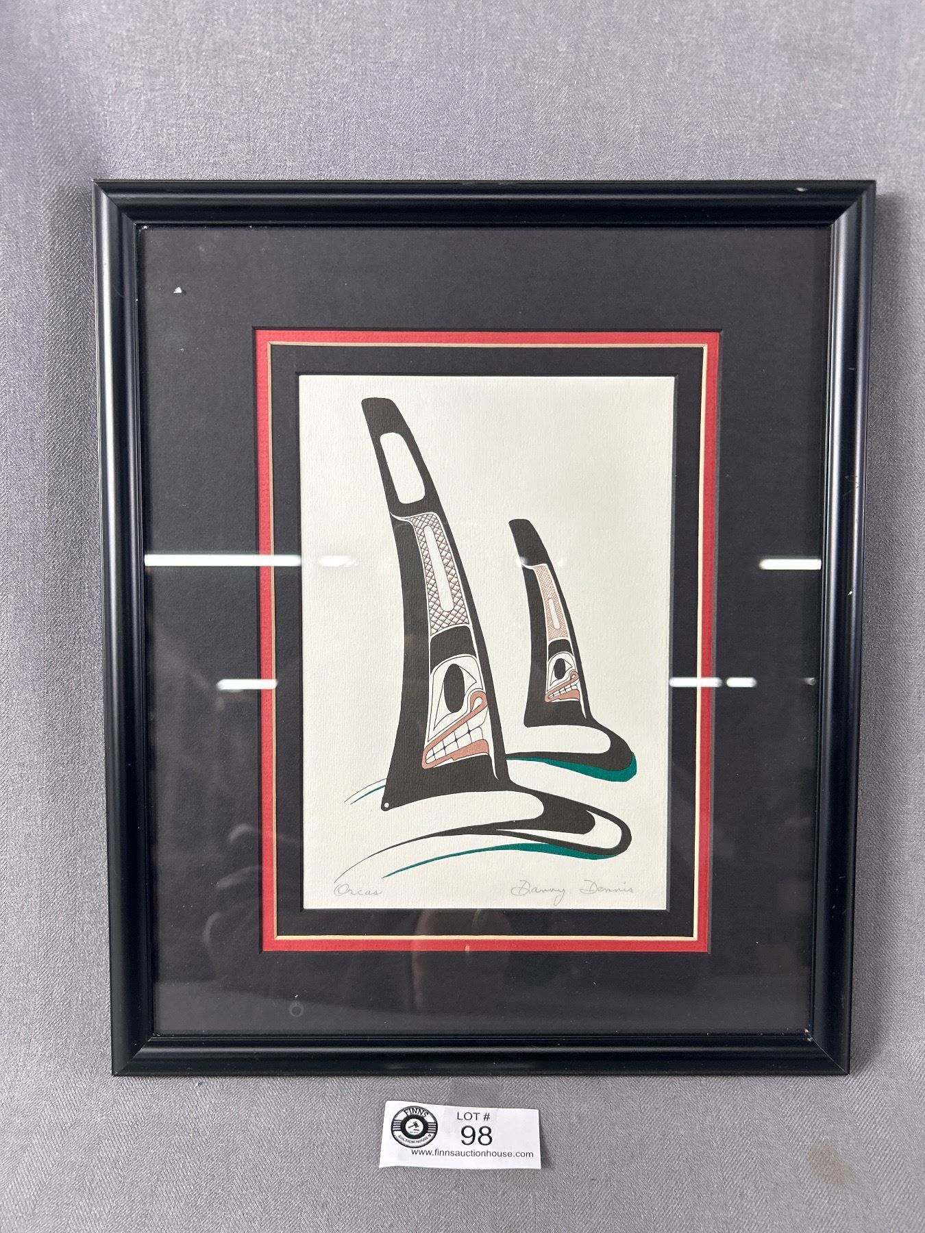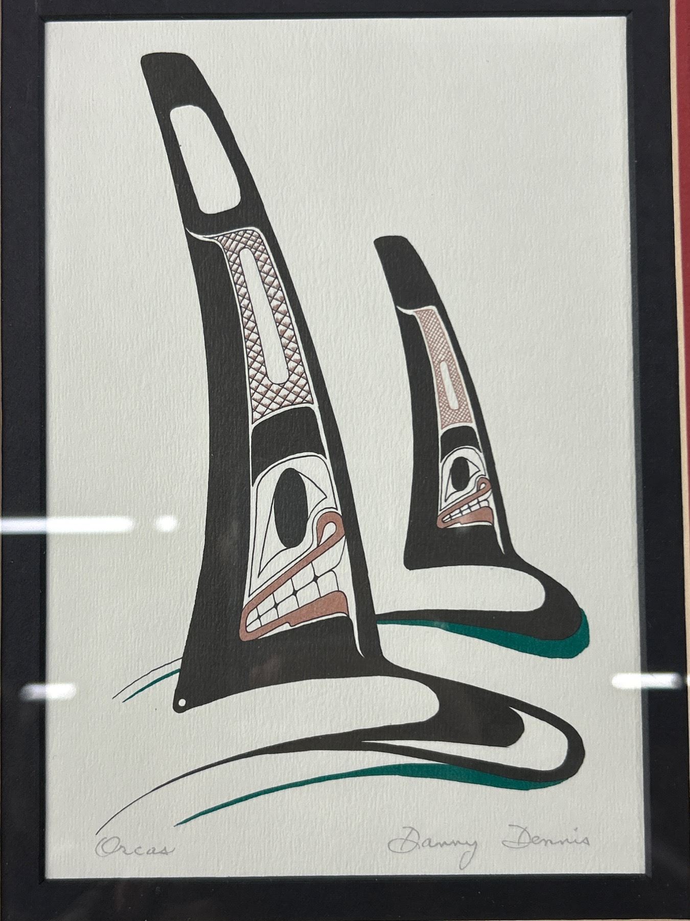 Orcas by Tsimshian Gitksan Danny Dennis - 11" x 13" Matted And Framed Print