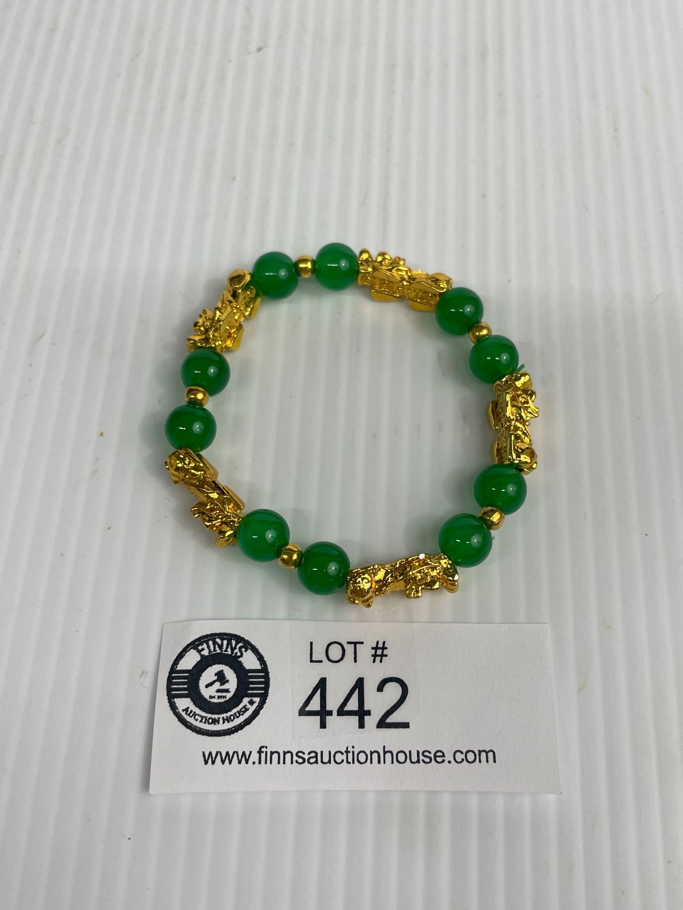 Oriental Bracelet w/5 Foo Dogs & Green Beads