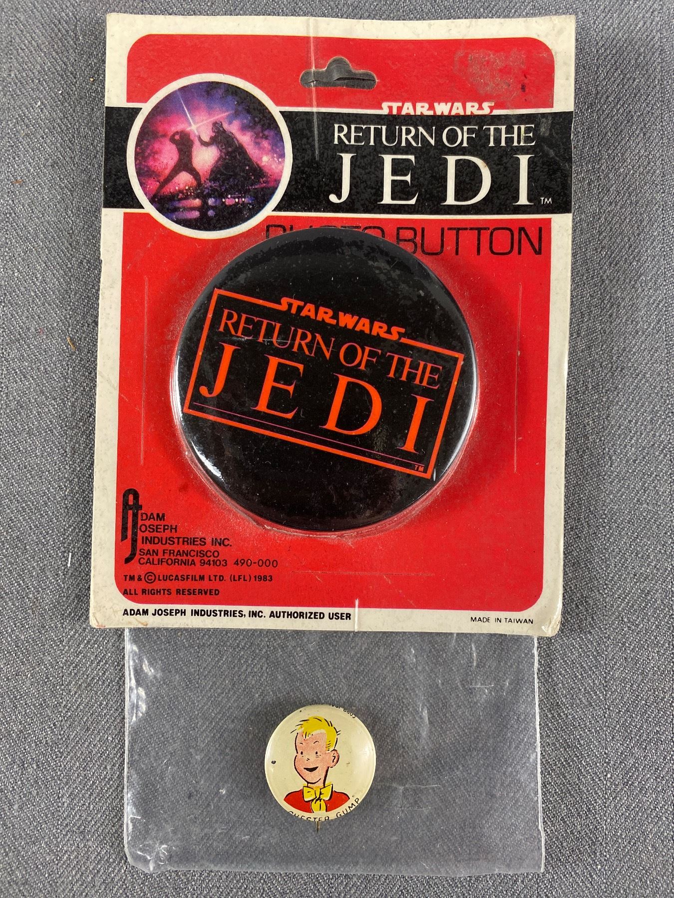 Original 1946 Kellogg Pep Pin Chester Gump & 1983 Star Wars Button MIP