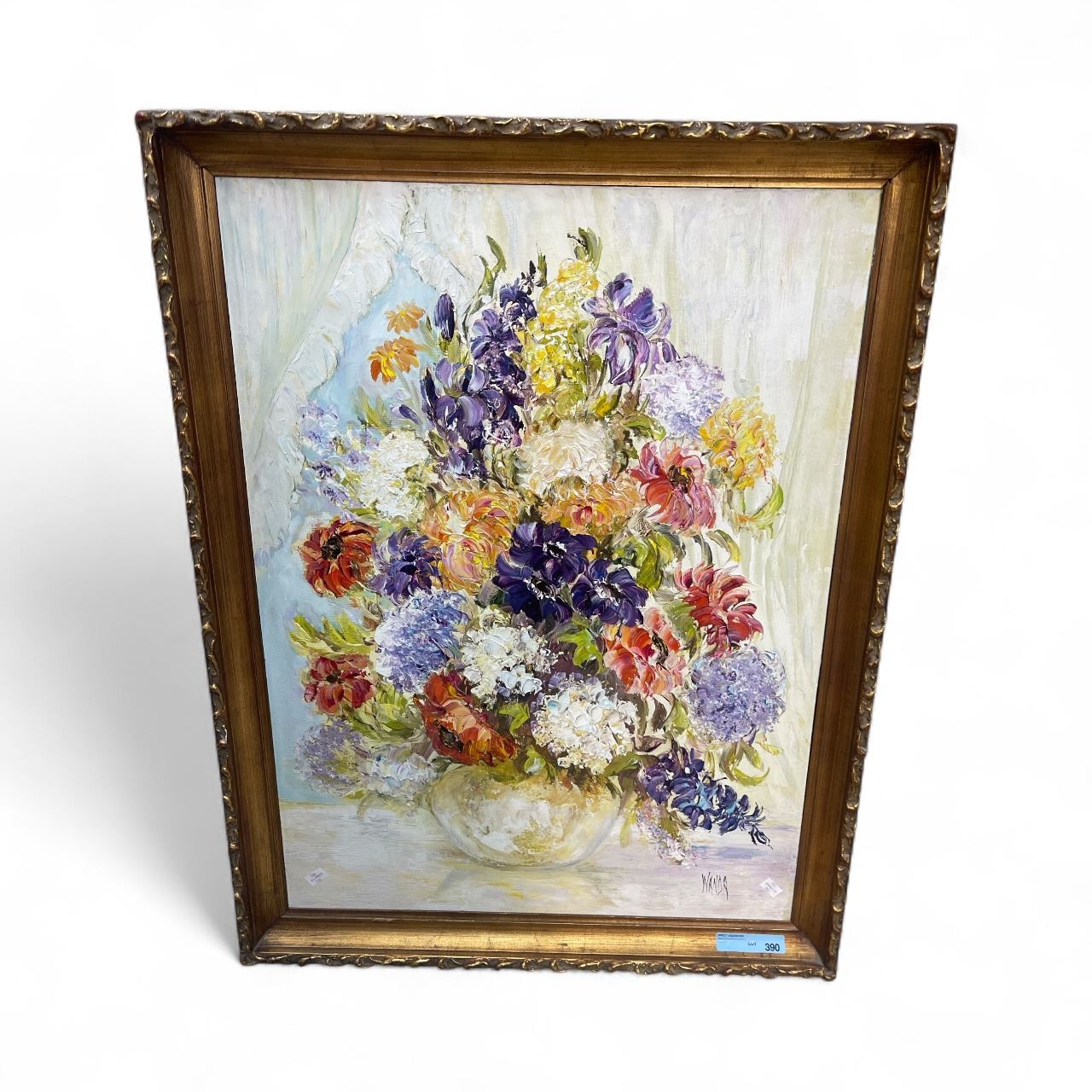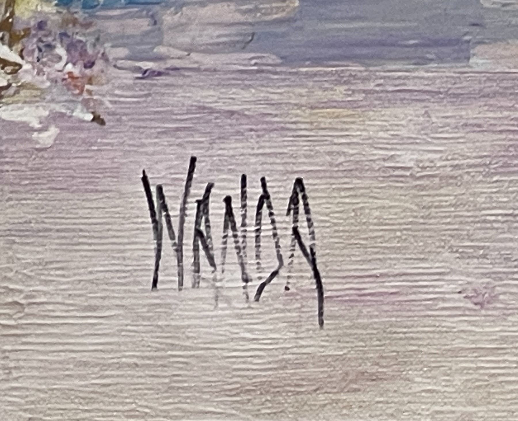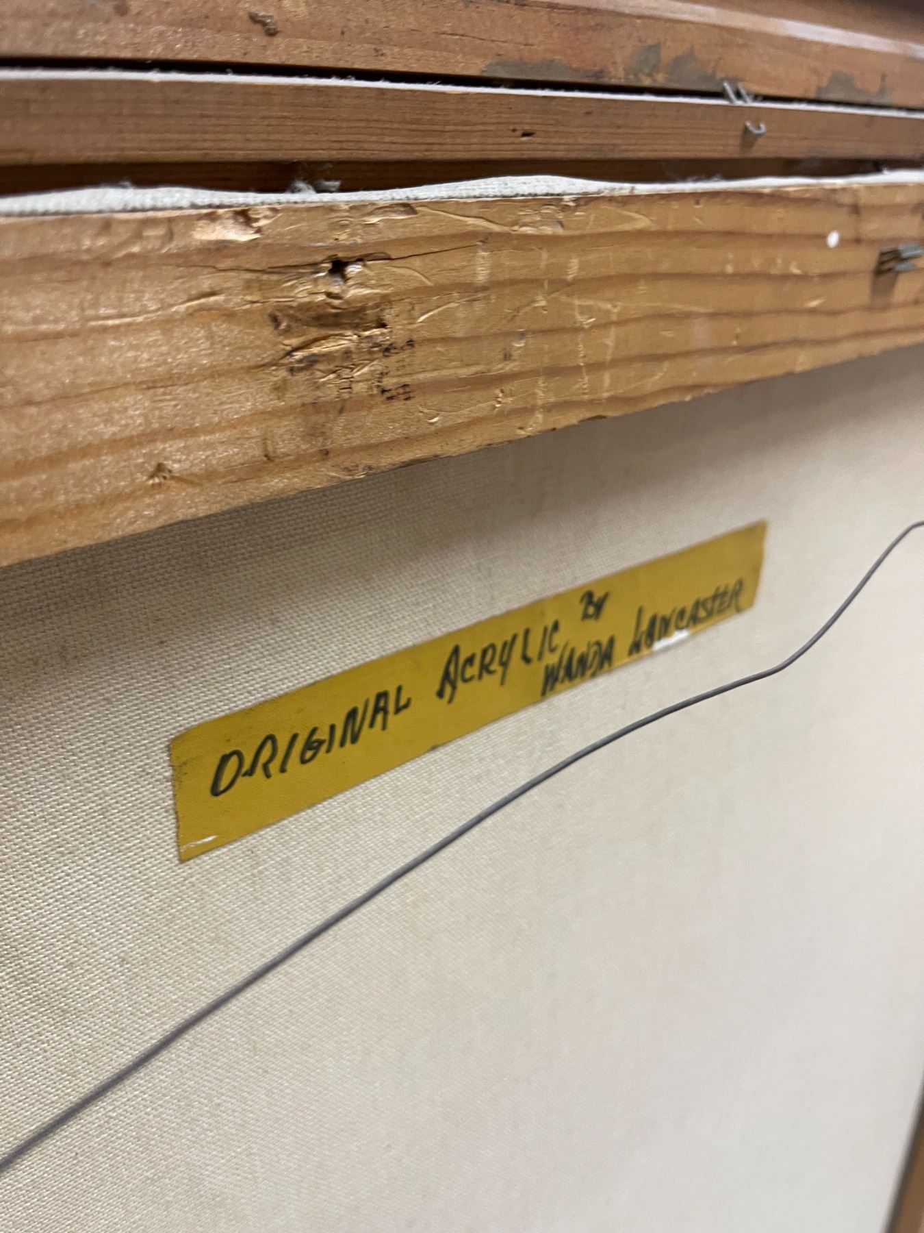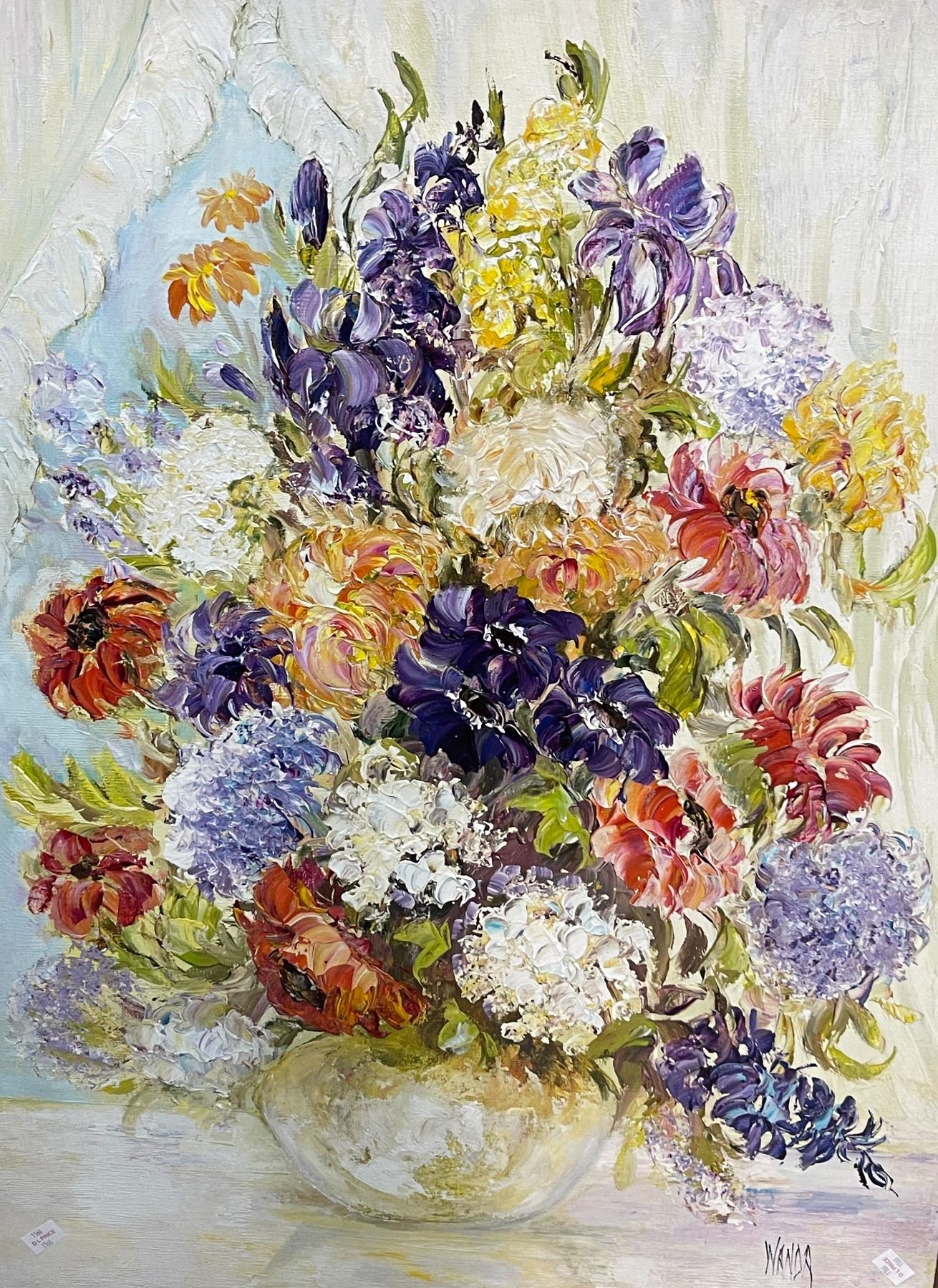 Original Golden Framed Acrylic on Canva Flowers Painting, by Wanda - approx. 45" x 35"