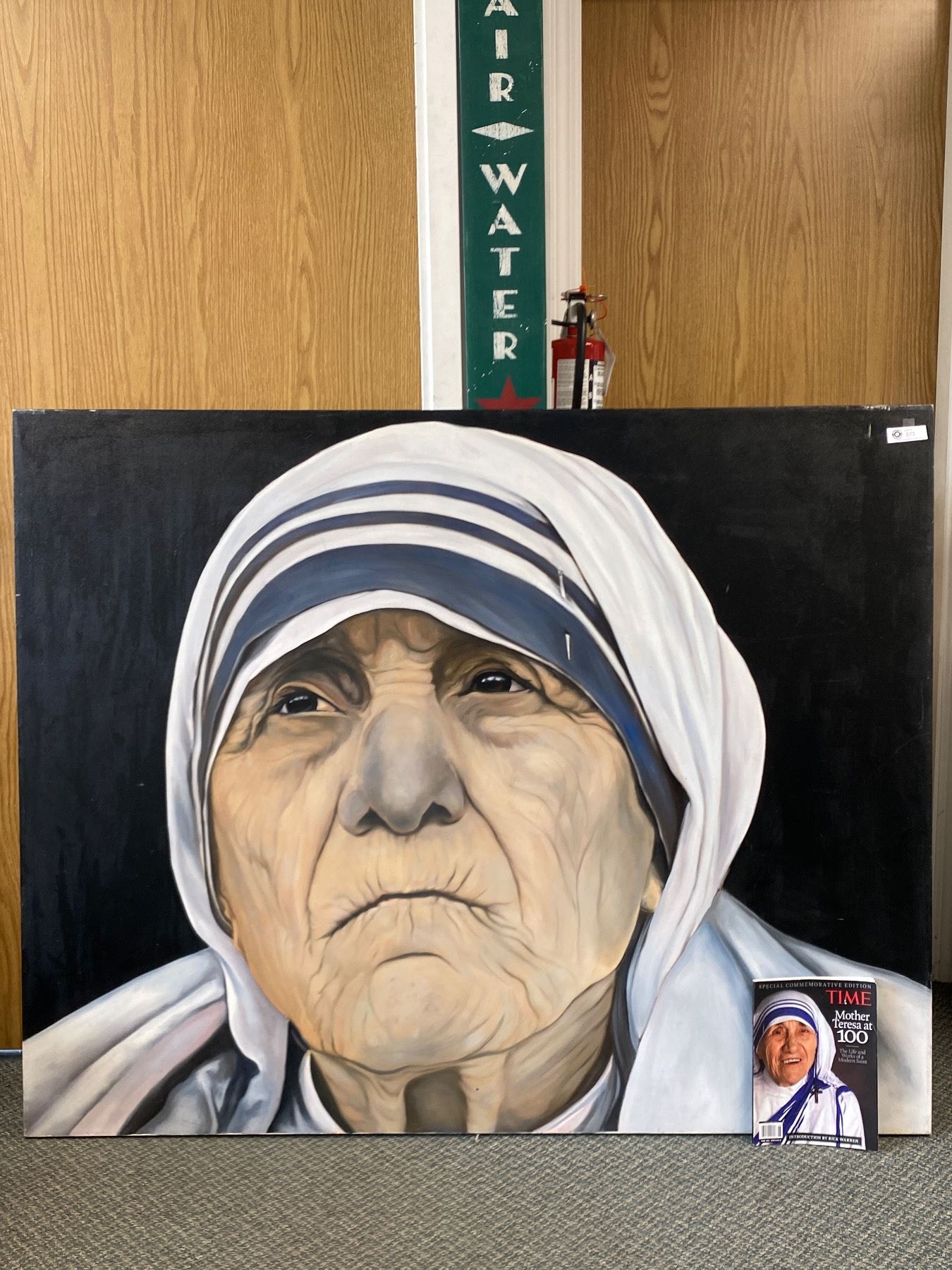 Original Painting 60" x 48" of Mother Teresa Unsigned Comes with Time Magazine