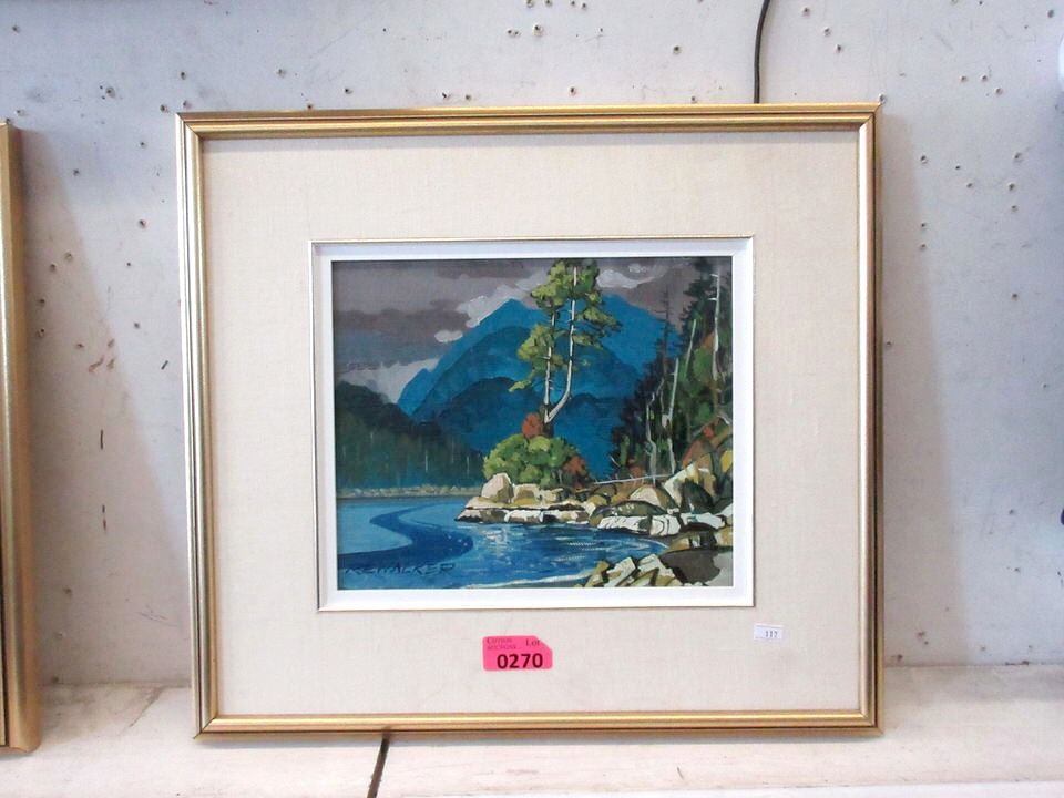 "Stubbs and Meares Islands - Tofino". 10" x 12" Acrylic on Board (21" x 19" framed). Harrison Galleries accreditation label on the back.