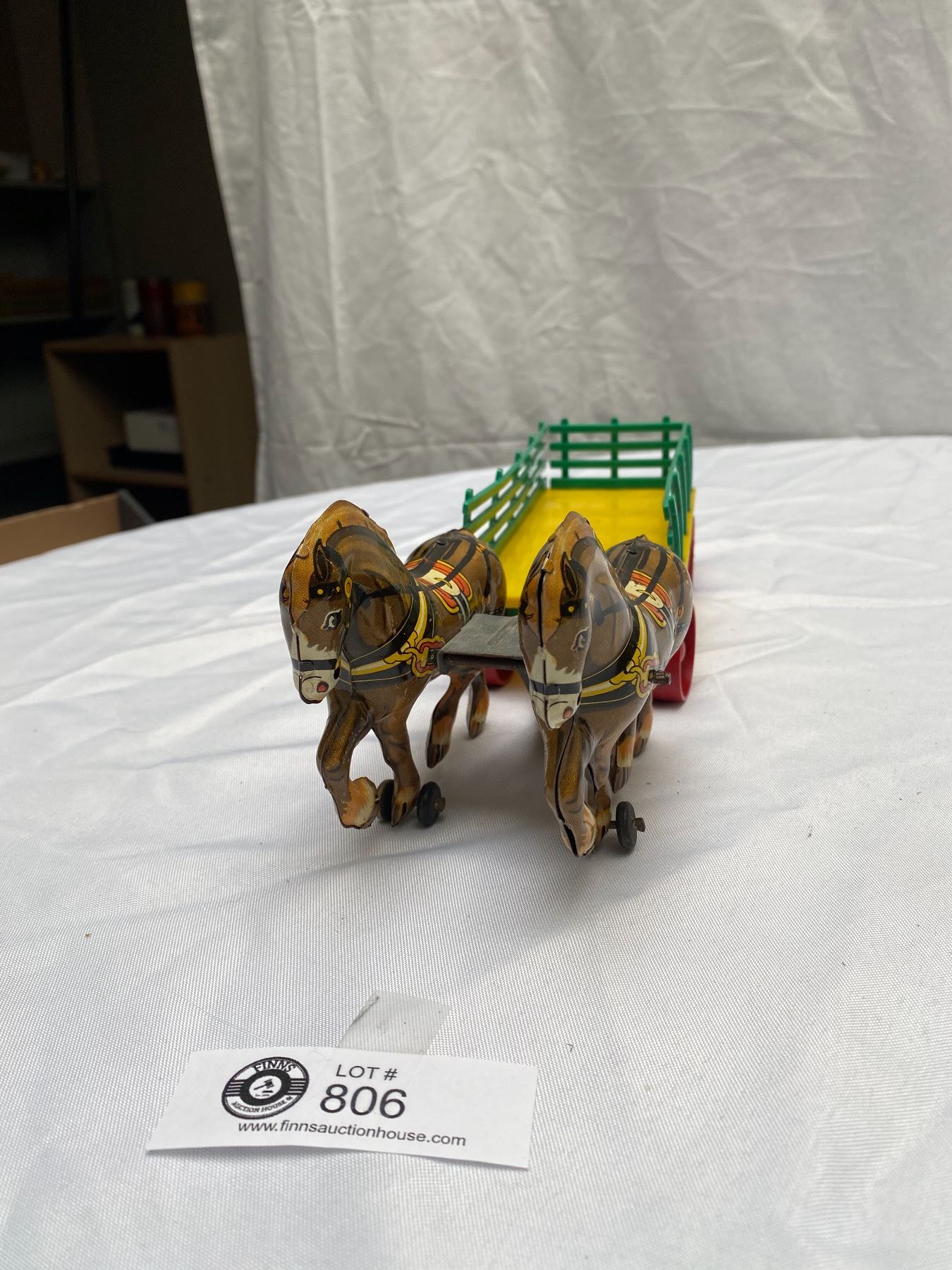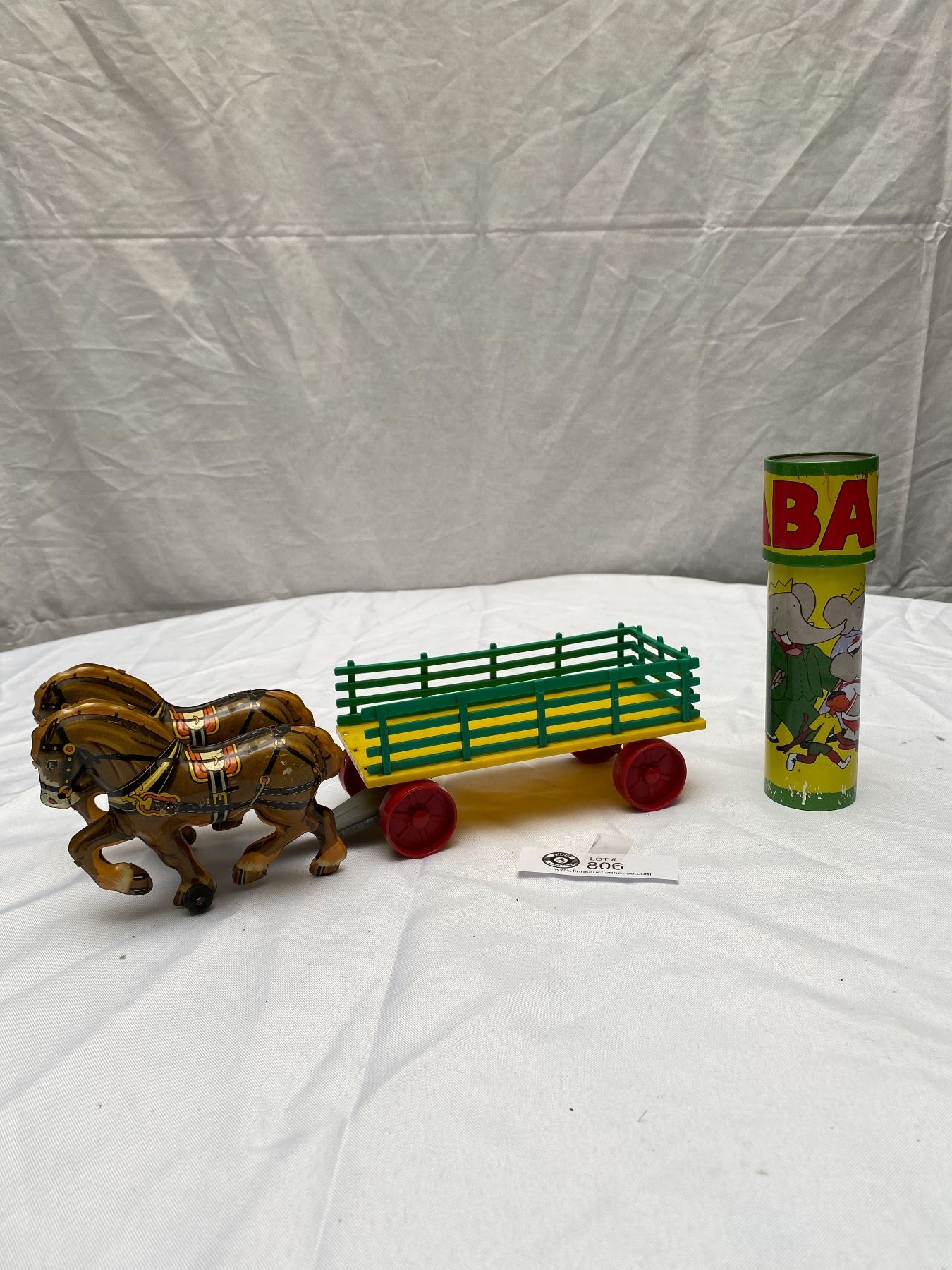 Original Vintage "Mar" Tin Horse Drawn Wagon And Vintage Babar Elephant Kaleidoscope in Good Working Order