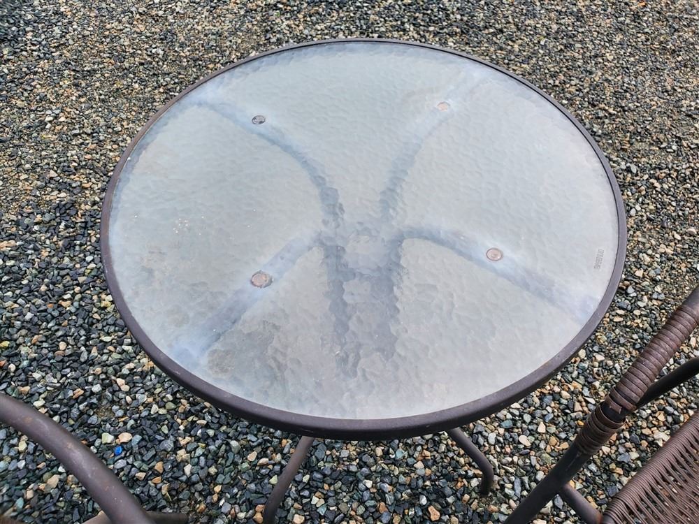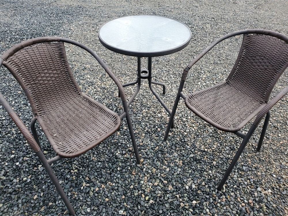 Outdoor Small Table & 2 Chairs - Most Items have not been tested - Viewing Recommended- 17% Buyer Fee. Payment Processed through Live Auction World ( Visa or Master Card ) pick up Wednesday