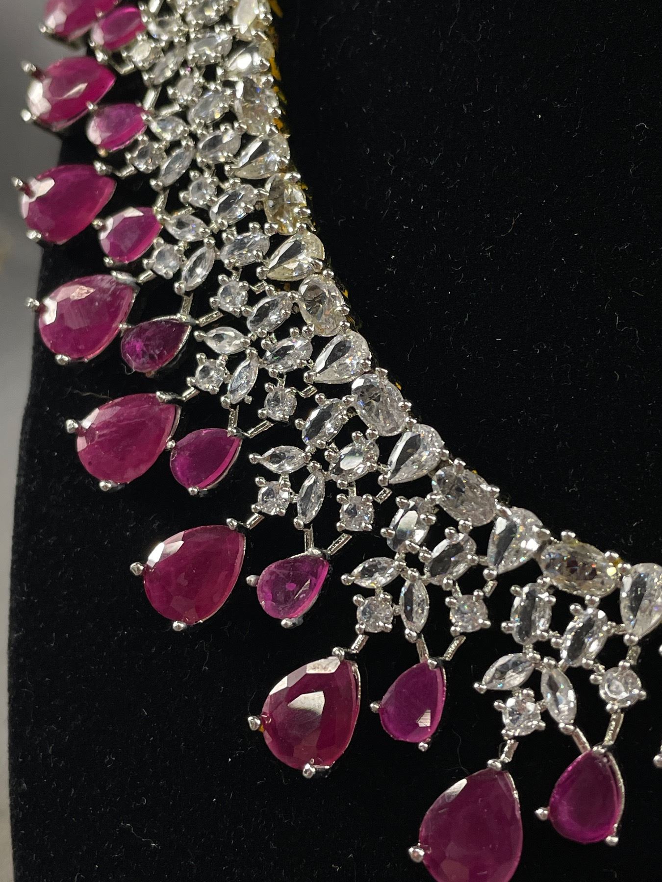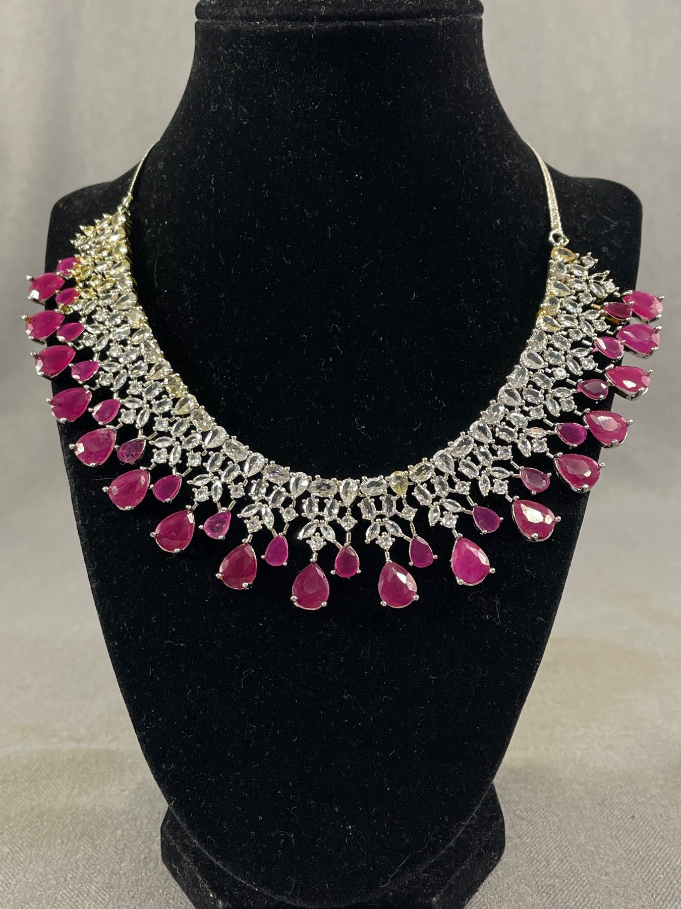 Outstanding Silver Plated with Clear & Ruby Red Stones Necklace Perfect to Wear for Holidays