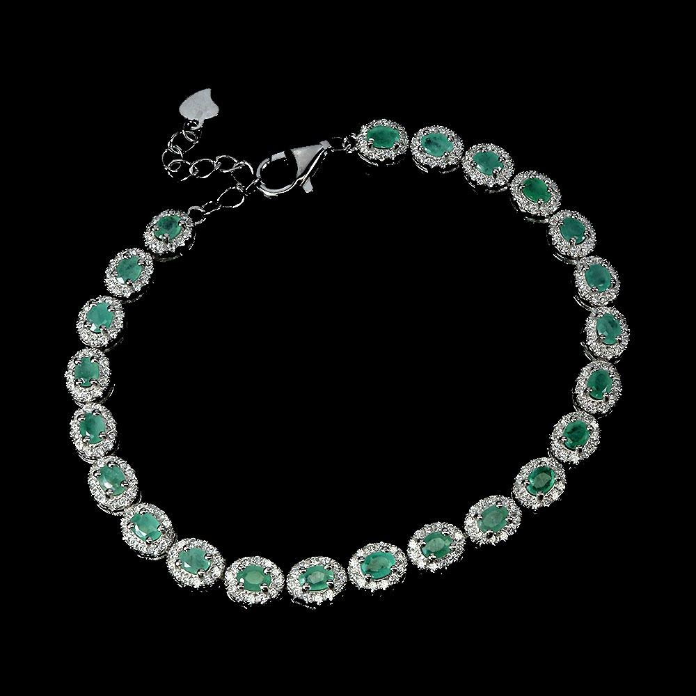 Oval Cut Emerald Bracelet in 14k White Gold-Plated 925 Sterling Silver – 7.5 inches long Appraised Replacement Value CAD 4,850