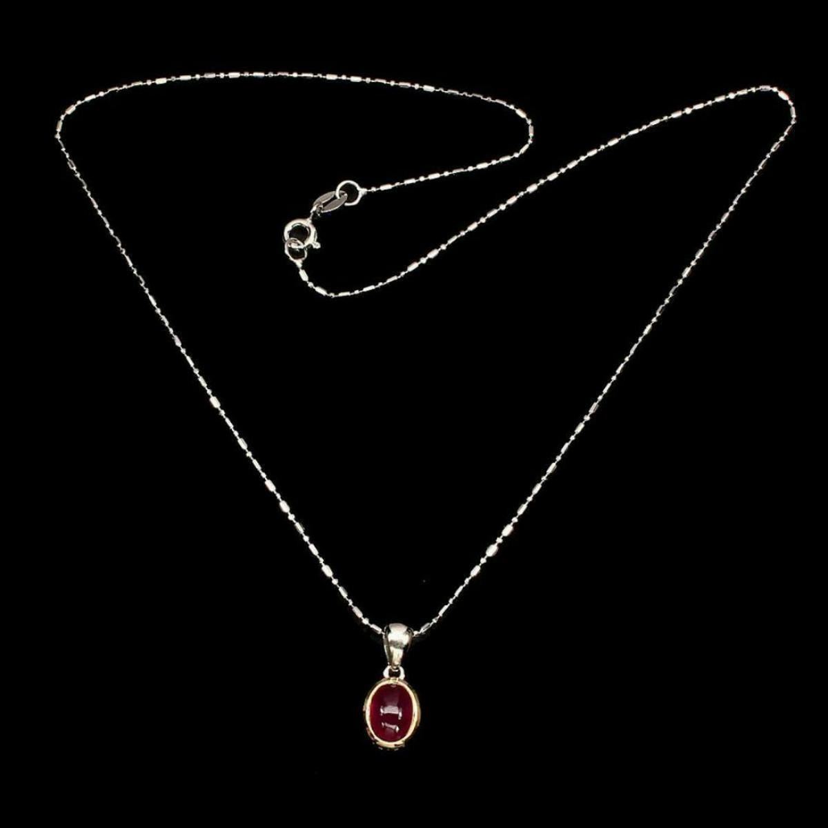 925 STERLING SILVER;PLATE2-TONE WHITE & ROSE 14K GOLDLENGTH (INCHES)16;MAIN STONE-RUBY;TOTAL WEIGHT-14.24 CT (TOTAL WEIGHT OF SILVER + STONE)DIMENSION-* STONE 8.0 X 6.0 MM. * STONES PART LENGTH 17.0 X 8.0 MM.MAIN STONE SHAPE-OVAL CABOCHON;MAIN STONE COLOR-TOP RICH RED;TREATMENT-Yes;ORIGIN-AFRICA;