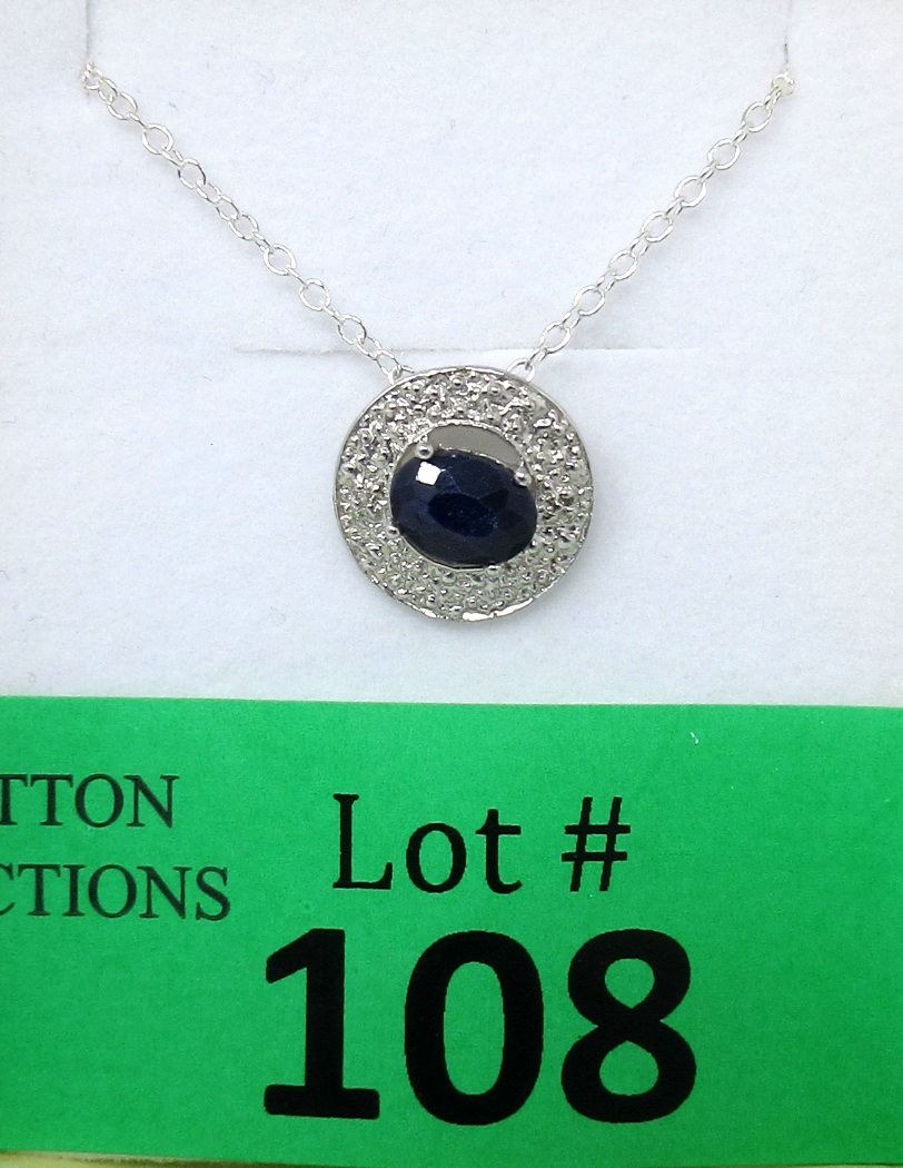 1.55 CT, 8 x 6 mm Sapphire & 2 diamonds. Includes chain & $400 certificate.
