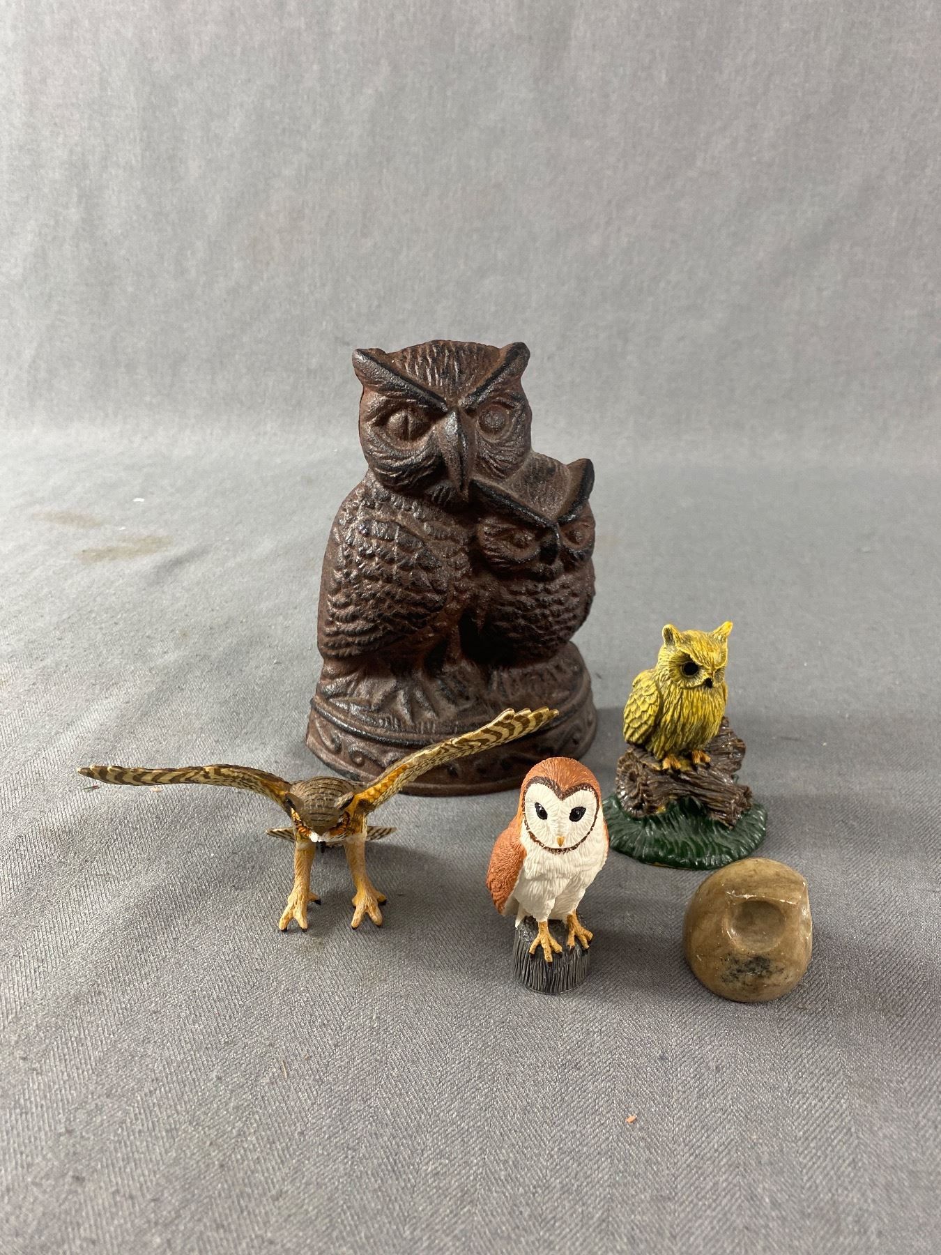 Owl Décor Lot. Resin, Smallest Is Stone, Largest Is Metal,
