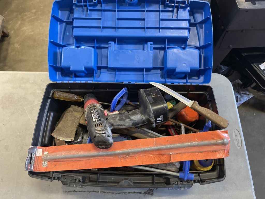 PAINTING SUPPLIES, SPRAYER AND TOOLBOX WITH CONTENTS