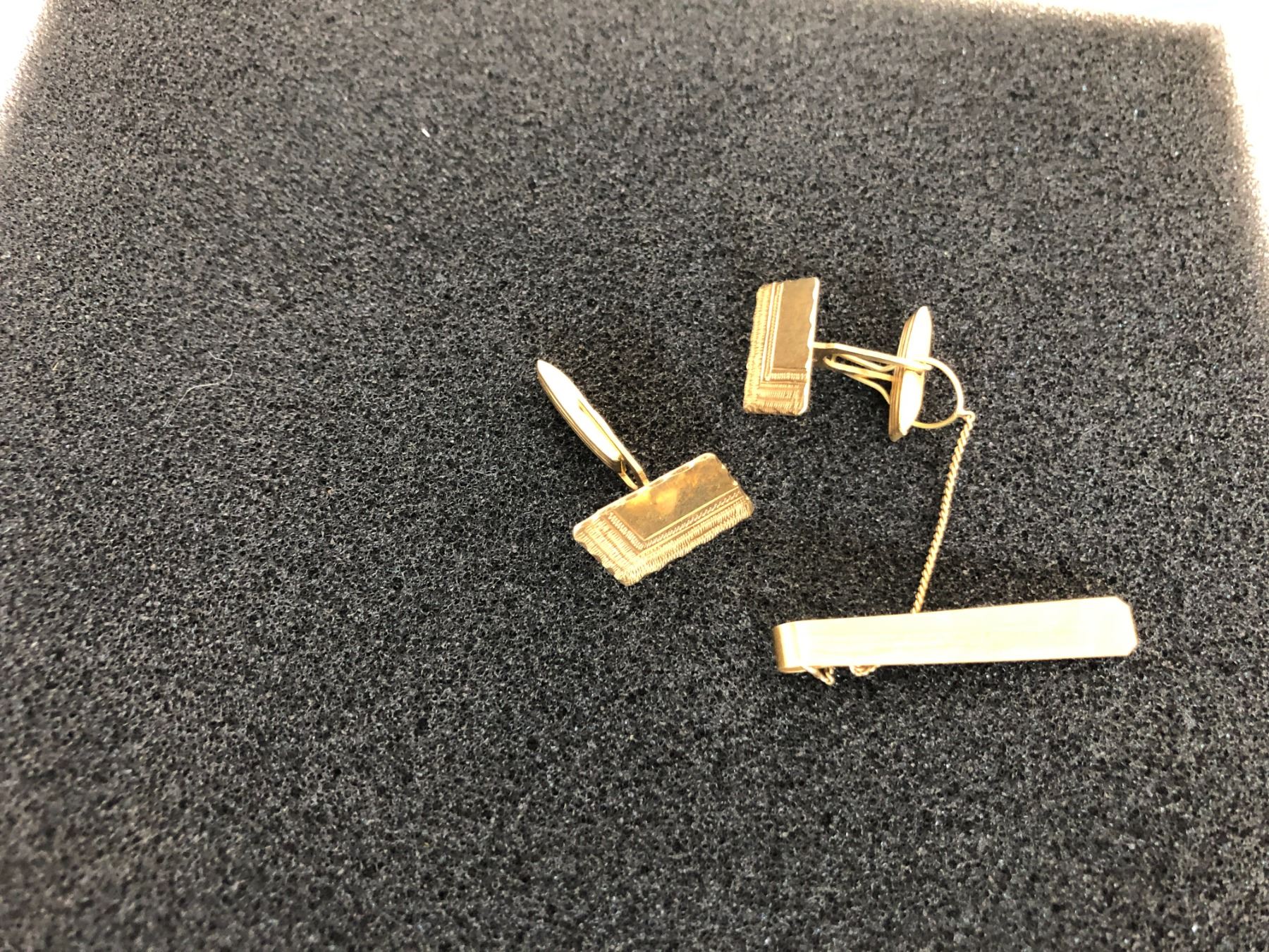 PAIR OF 14K CUFFLINKS AND 18K TIE CLIP